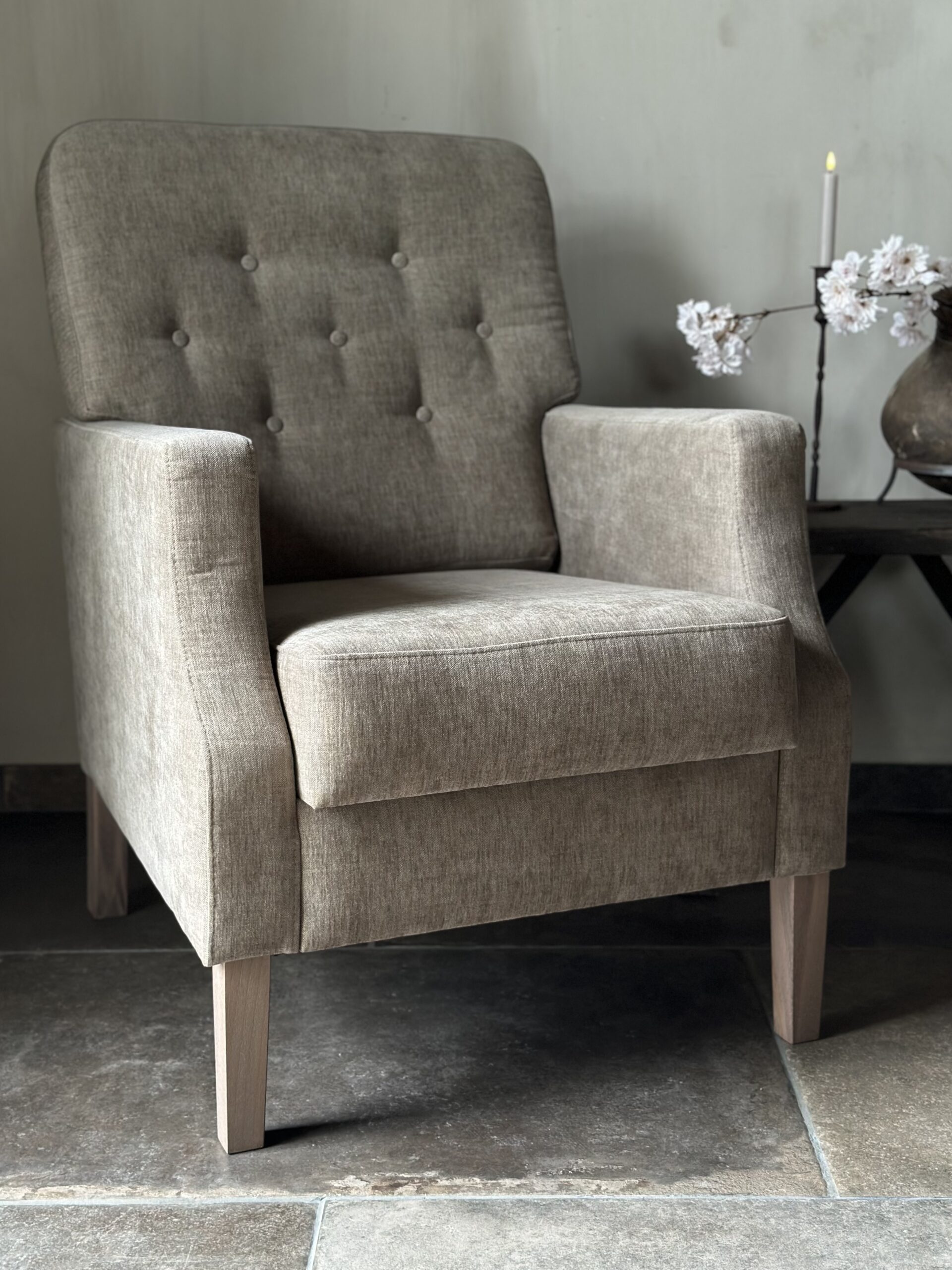* Deze fauteuil kan ook besteld worden zonder capitons.