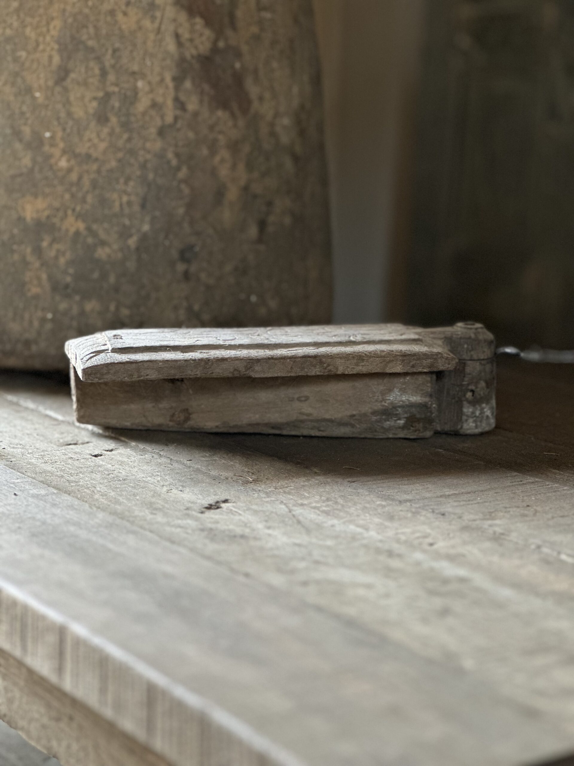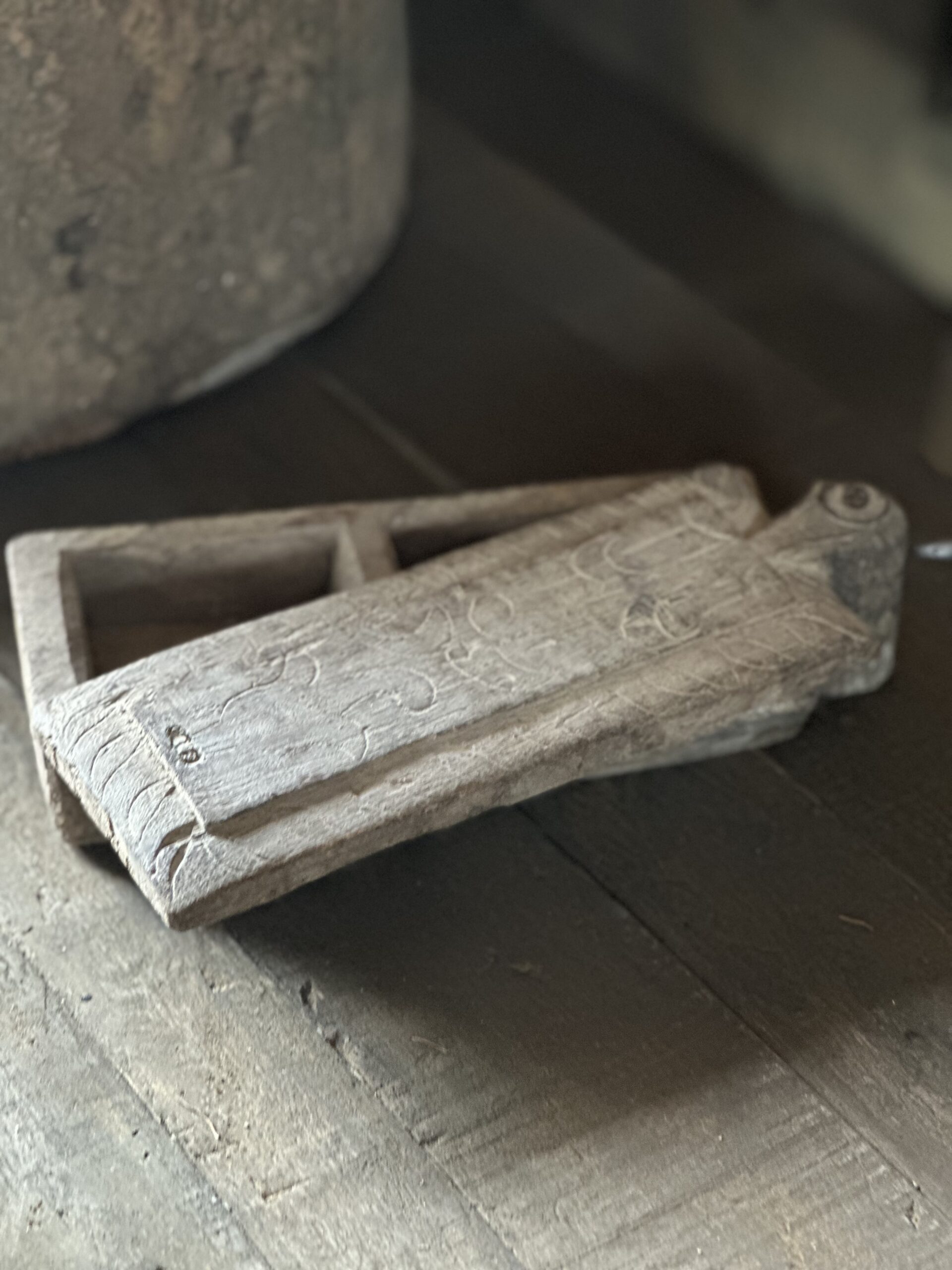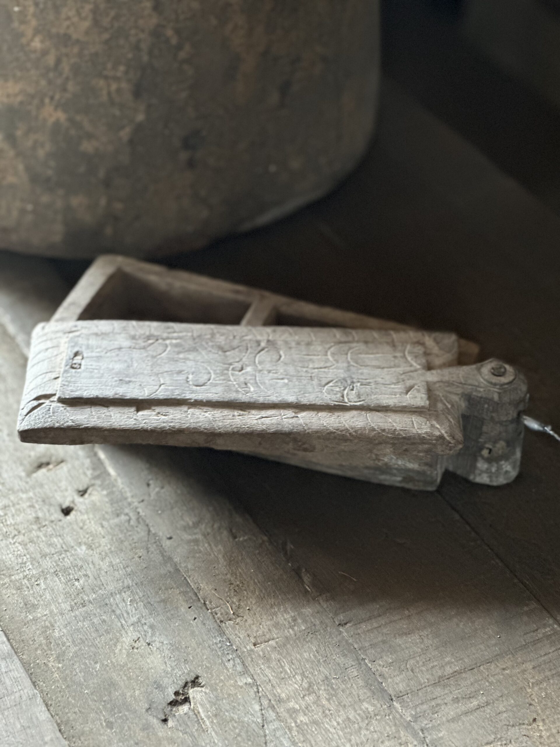 Oud houten kruidenbakje met deksel van Hoffz. Dit unieke bakje heeft 2 aparte vakjes.