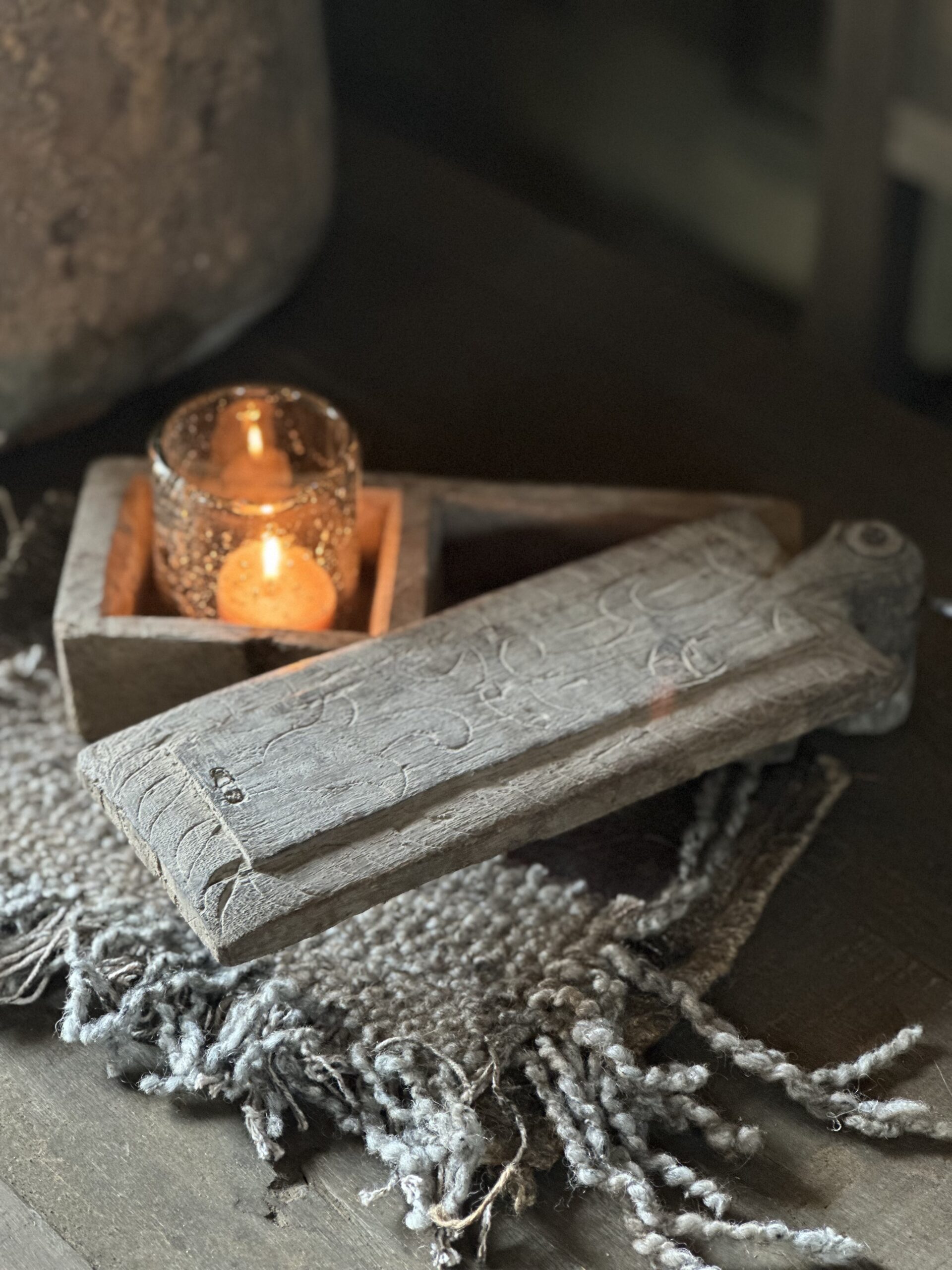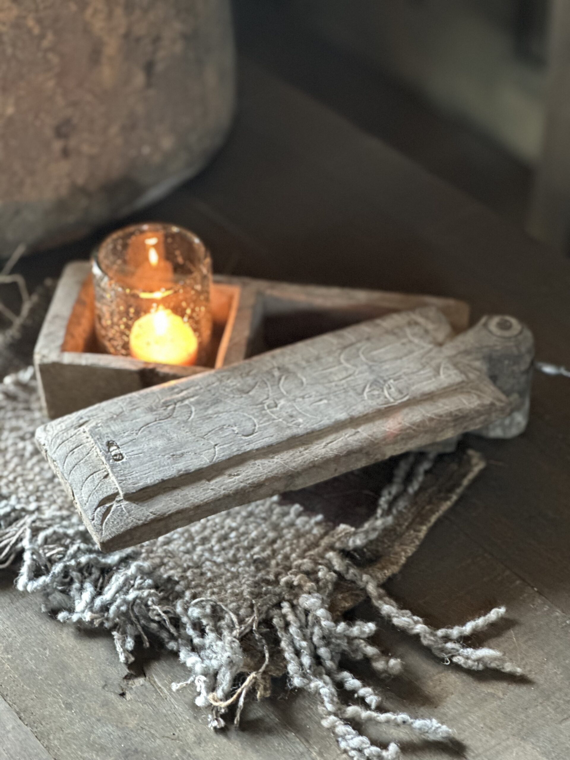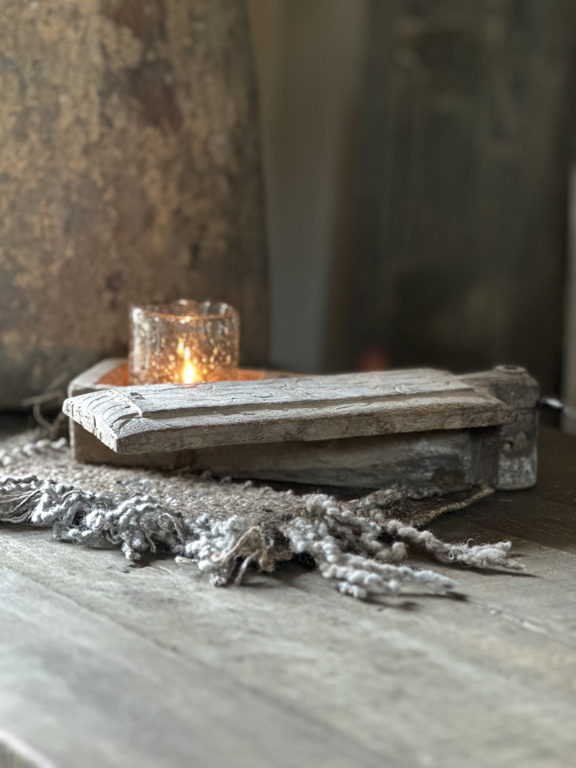 Oud houten kruidenbakje met deksel van Hoffz. Dit unieke bakje heeft 2 aparte vakjes.