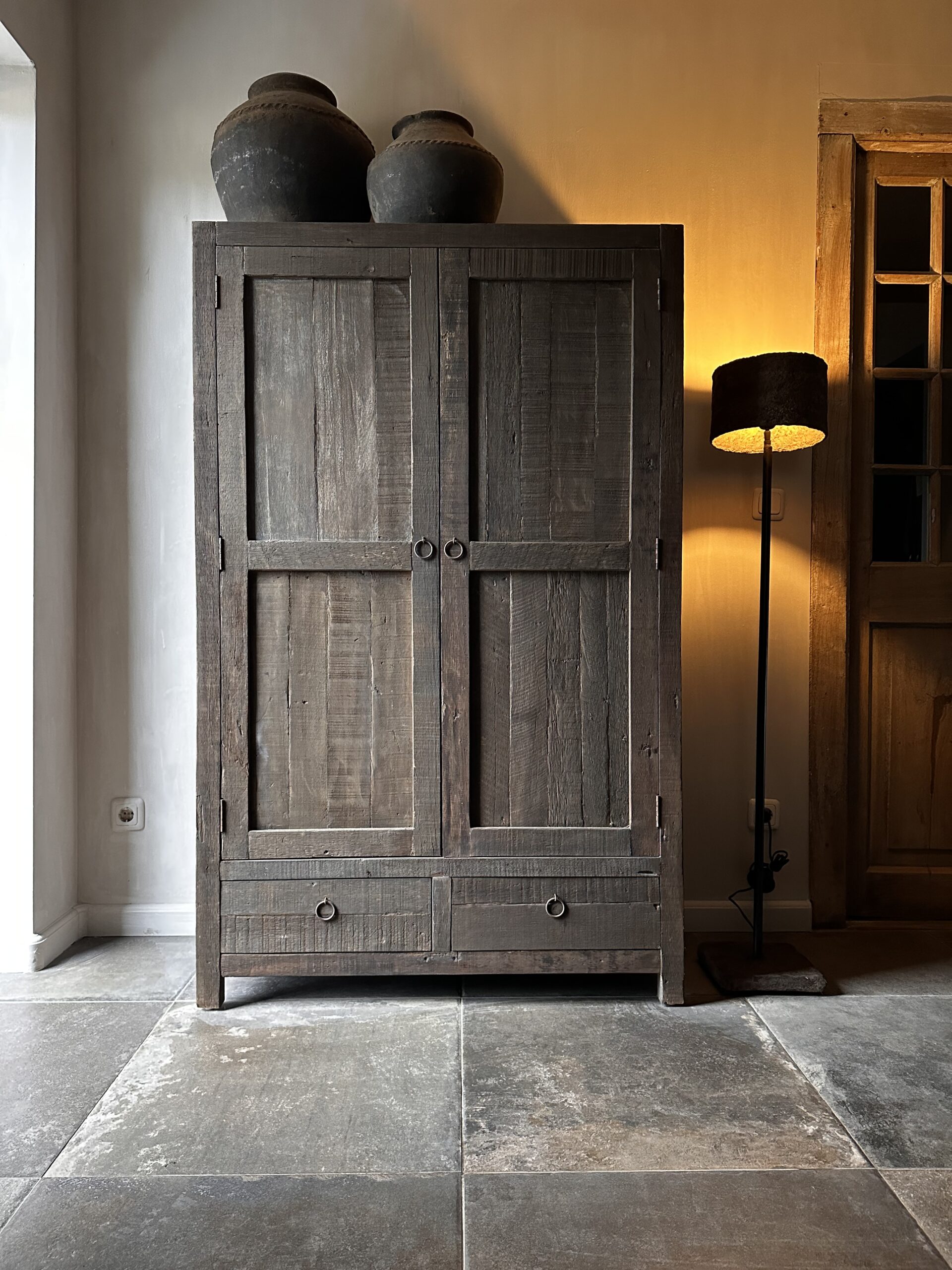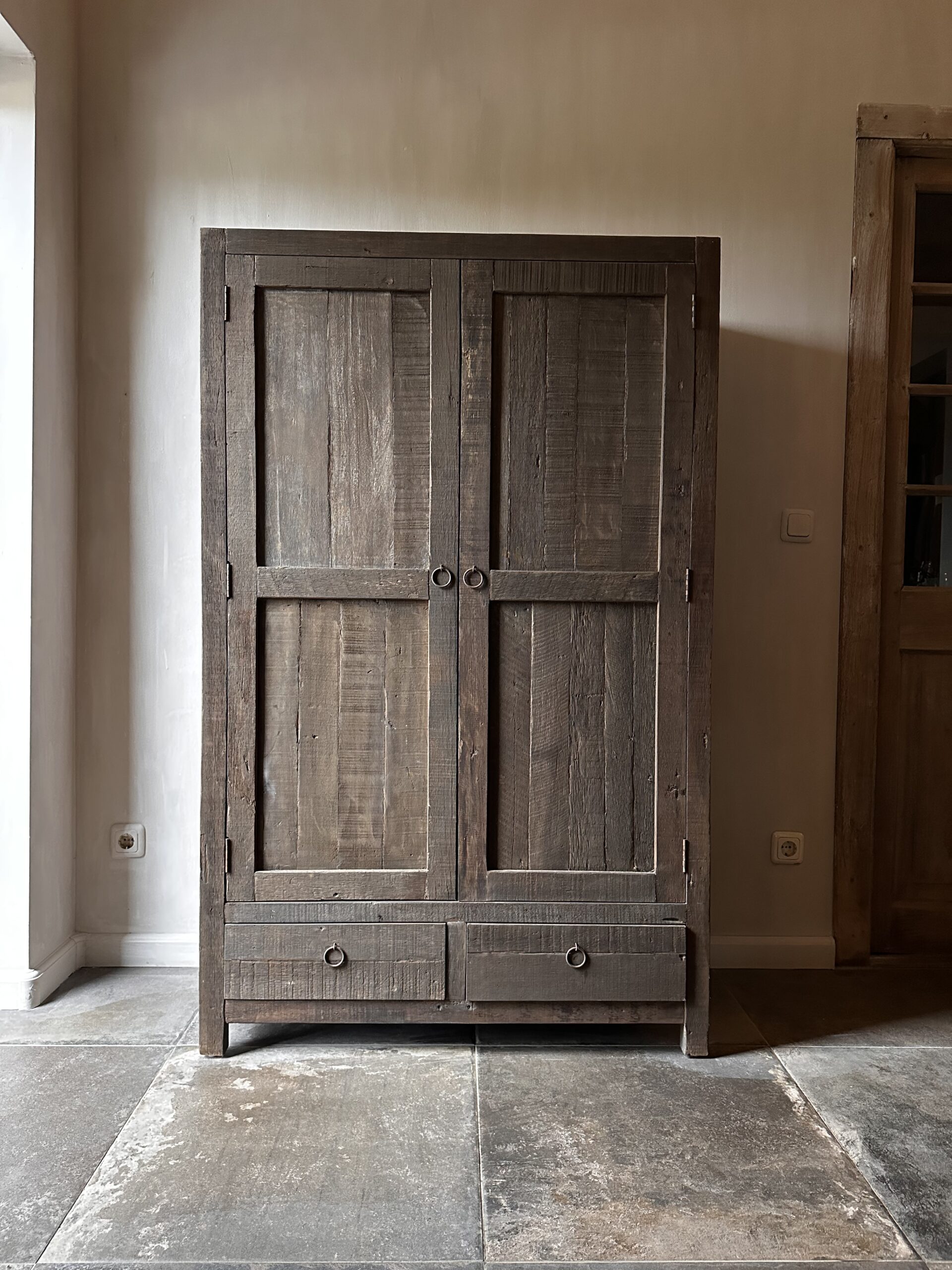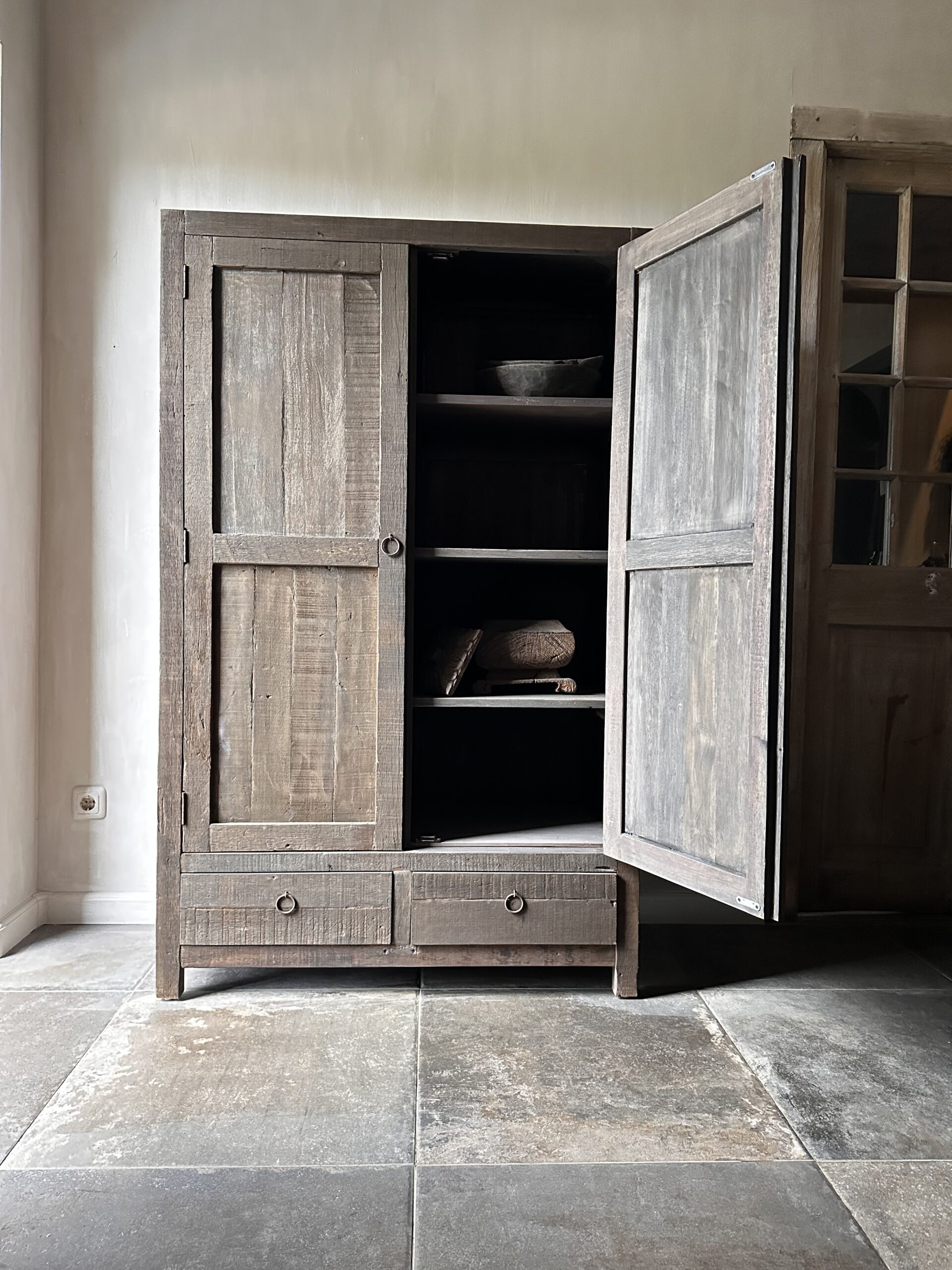 Deze kast is een onderdeel van onze uitgebreide Driftwood Collectie en heeft 2 deuren en 2 lades.