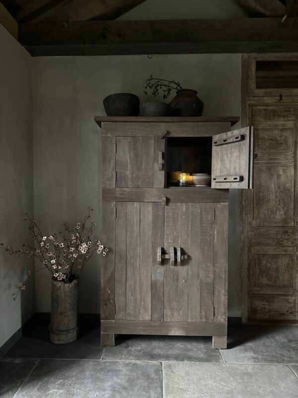 De Driftwood Collectie is opgebouwd uit oude planken van verschillend hardhout. De gerecyclede oude houten planken geven deze kast een unieke uitstraling en past daarom perfect in een landelijk, stoer of sober interieur.