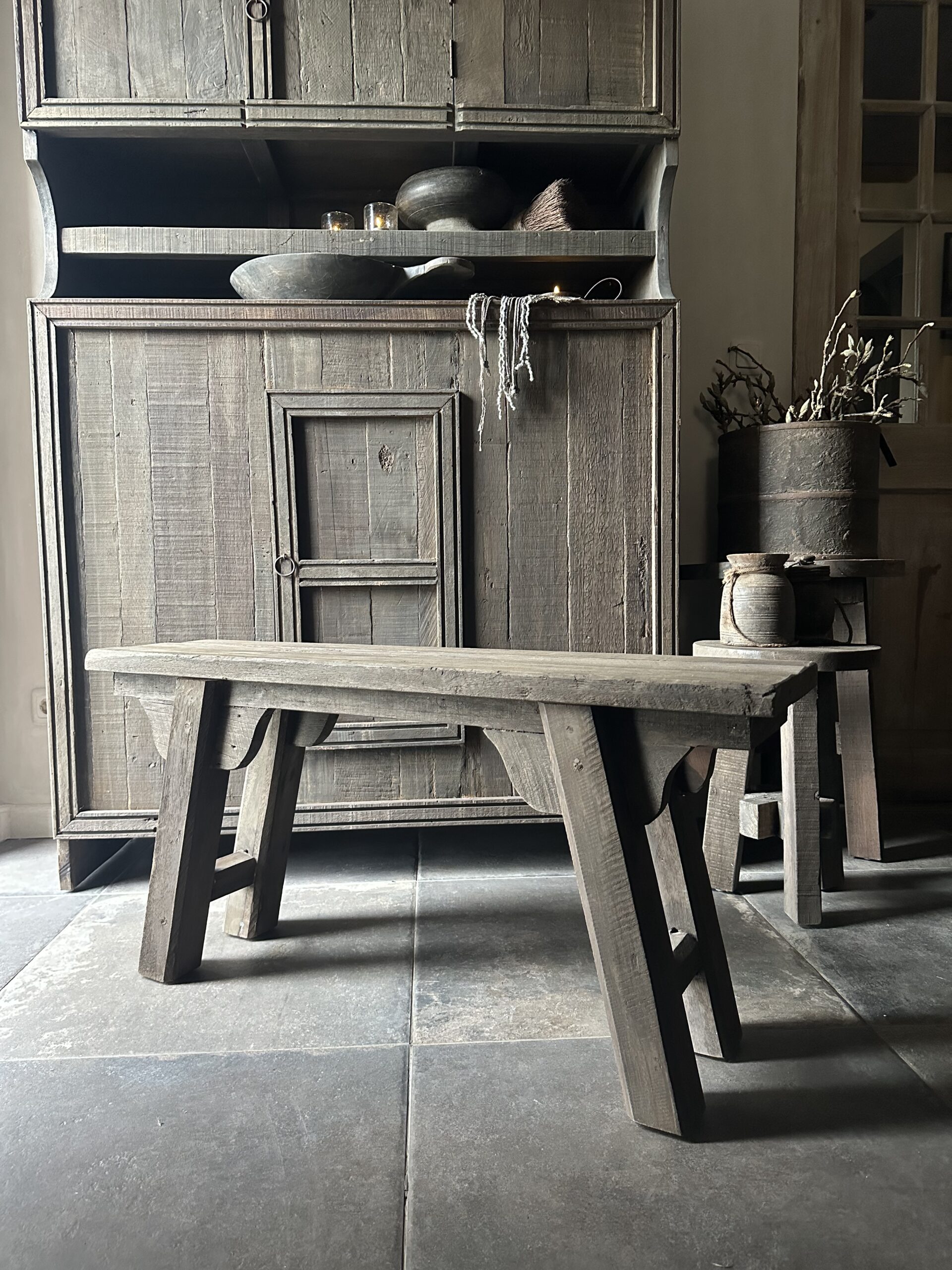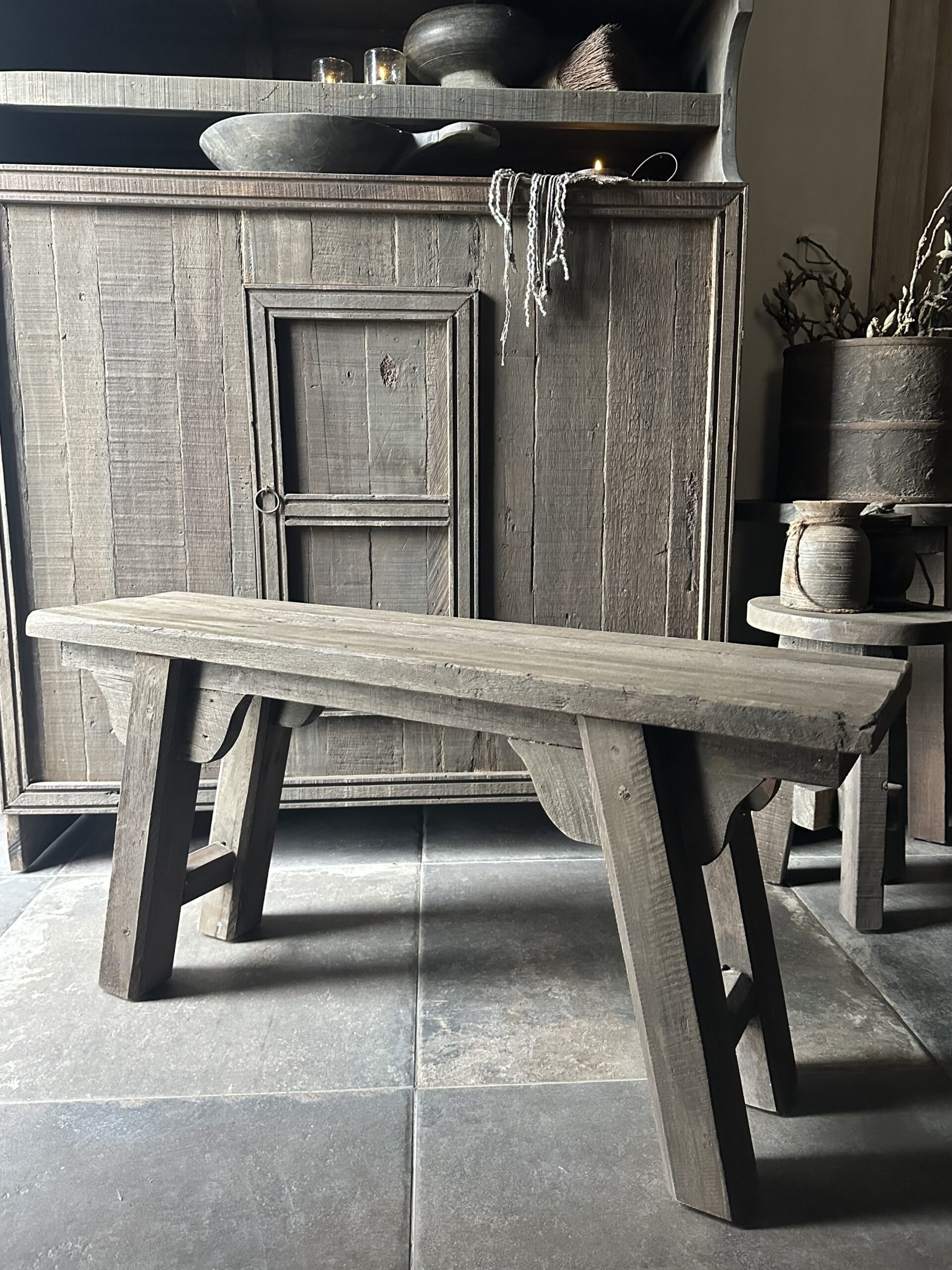 Dit stoere , zware en robuust Driftwood bankje heeft een lengte van 100 cm.