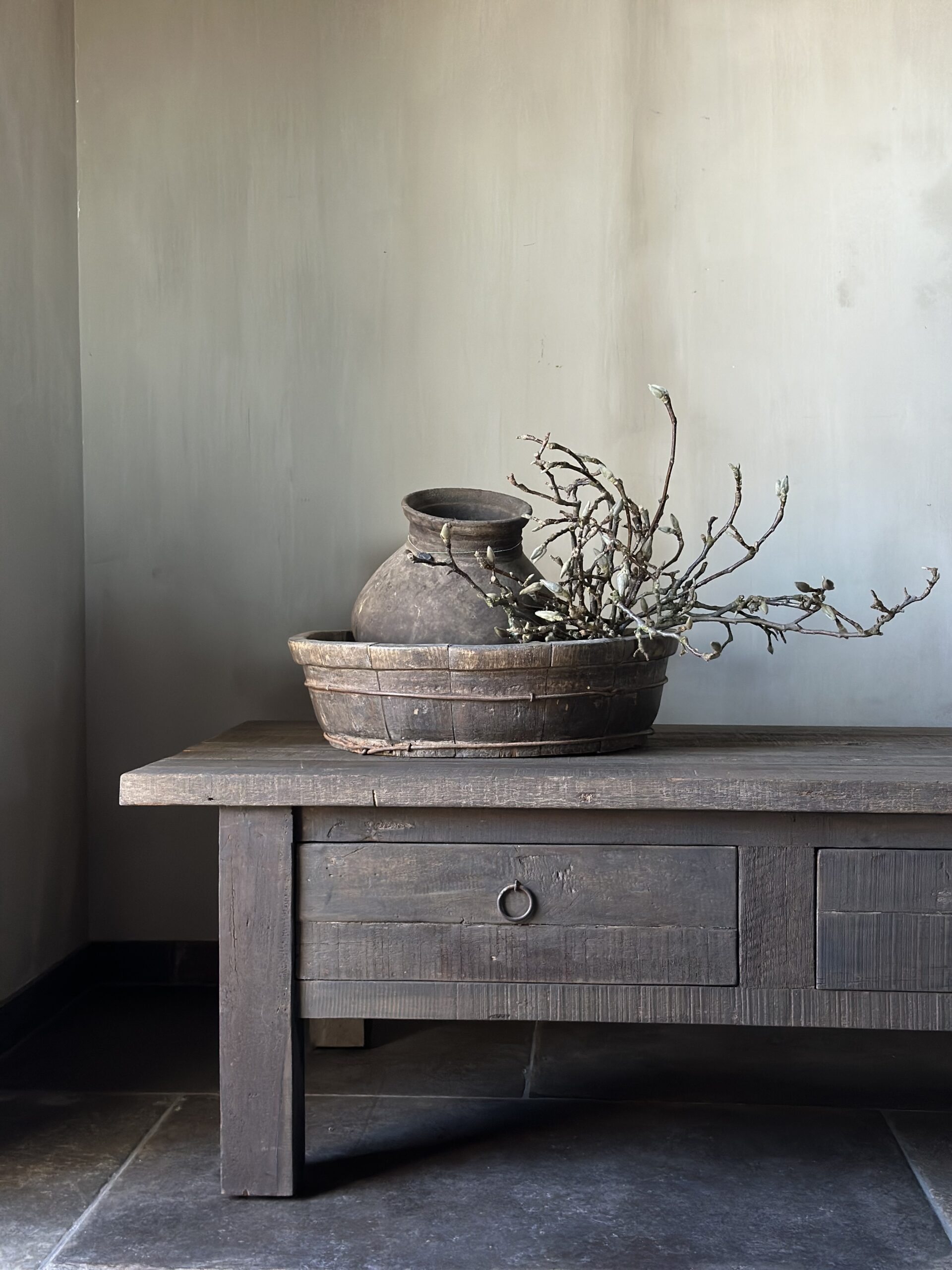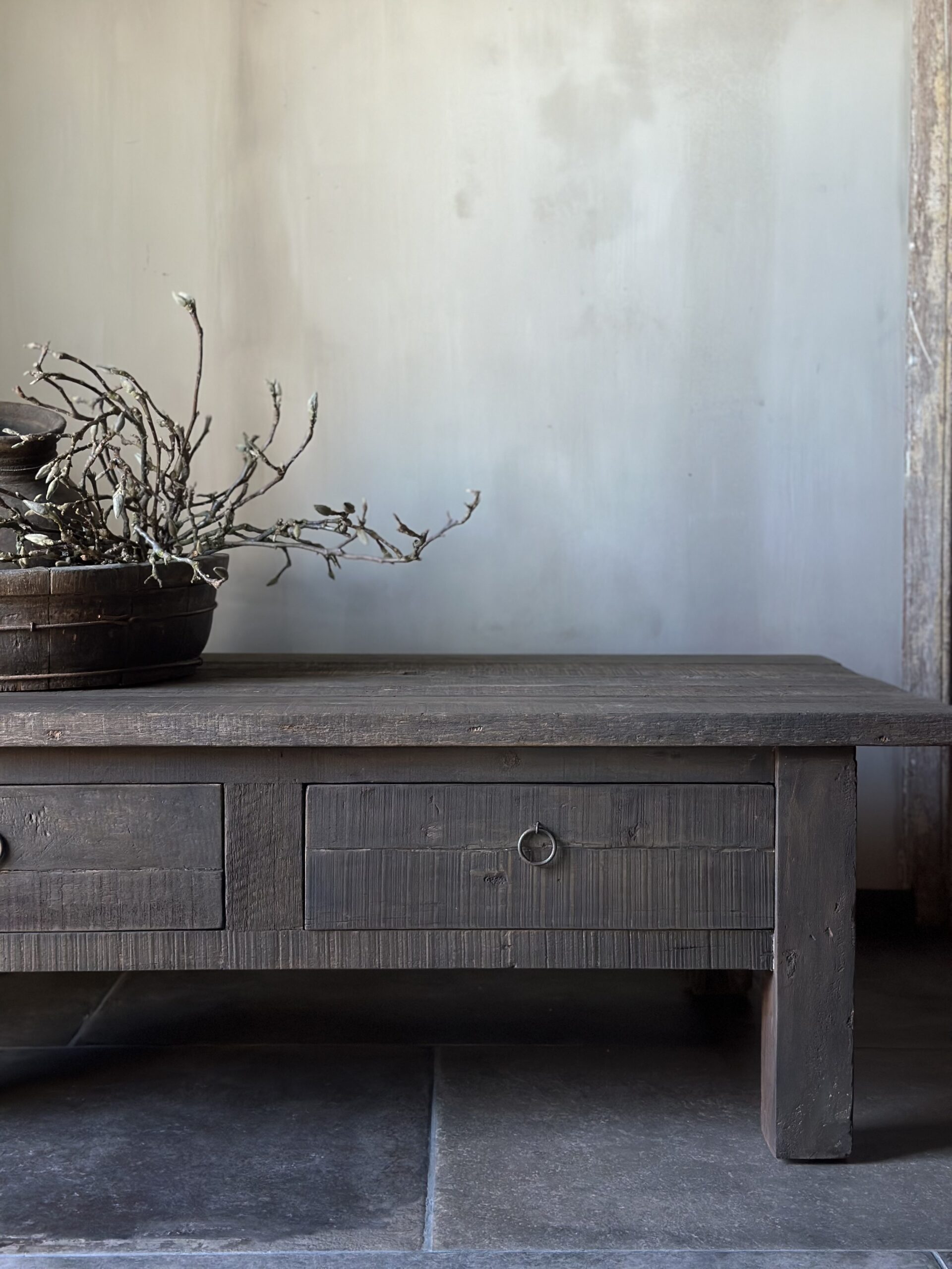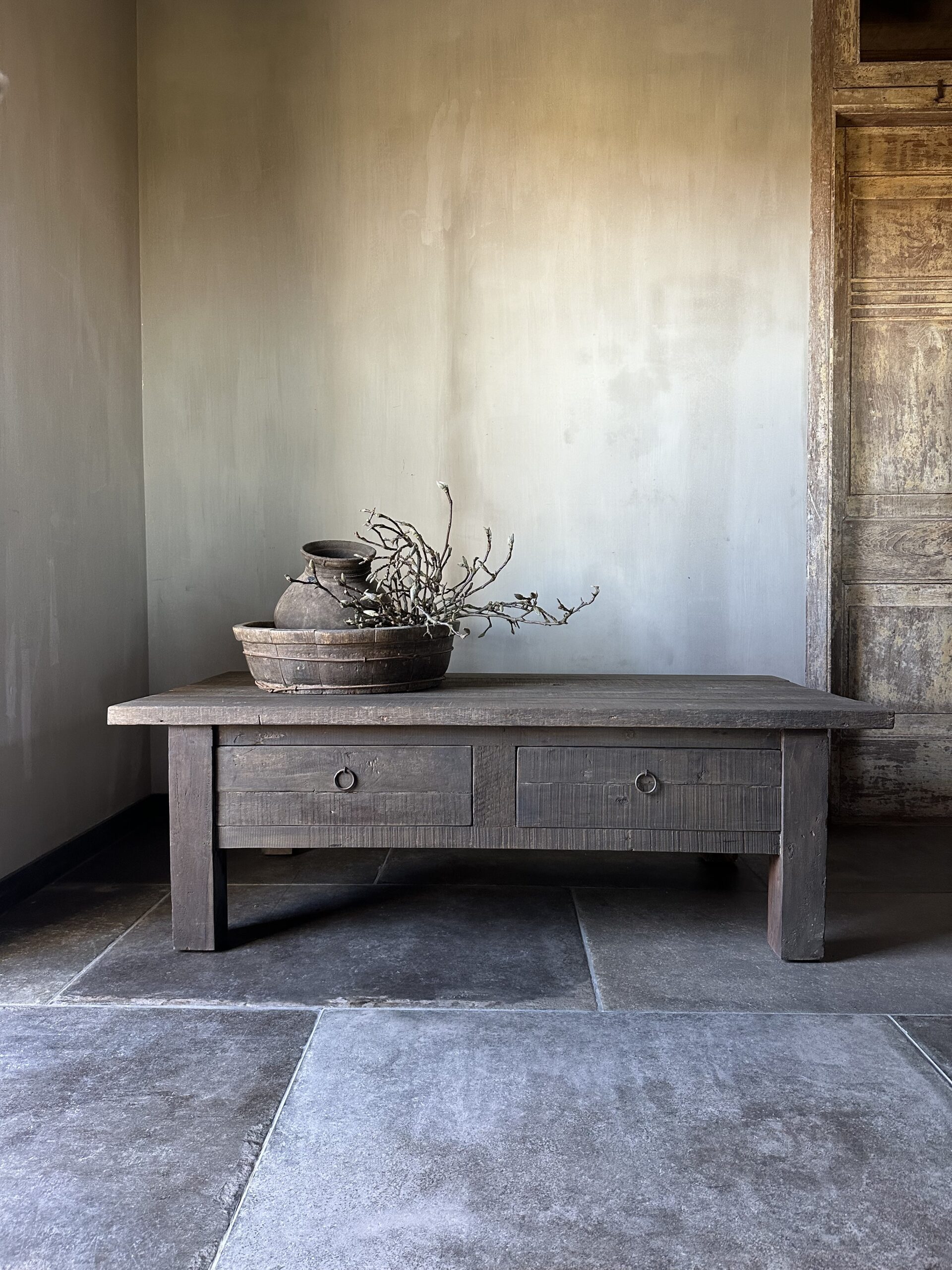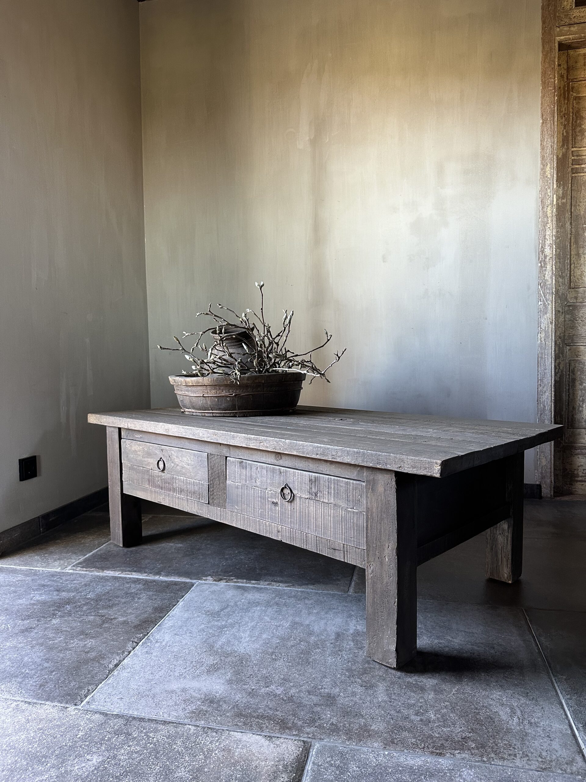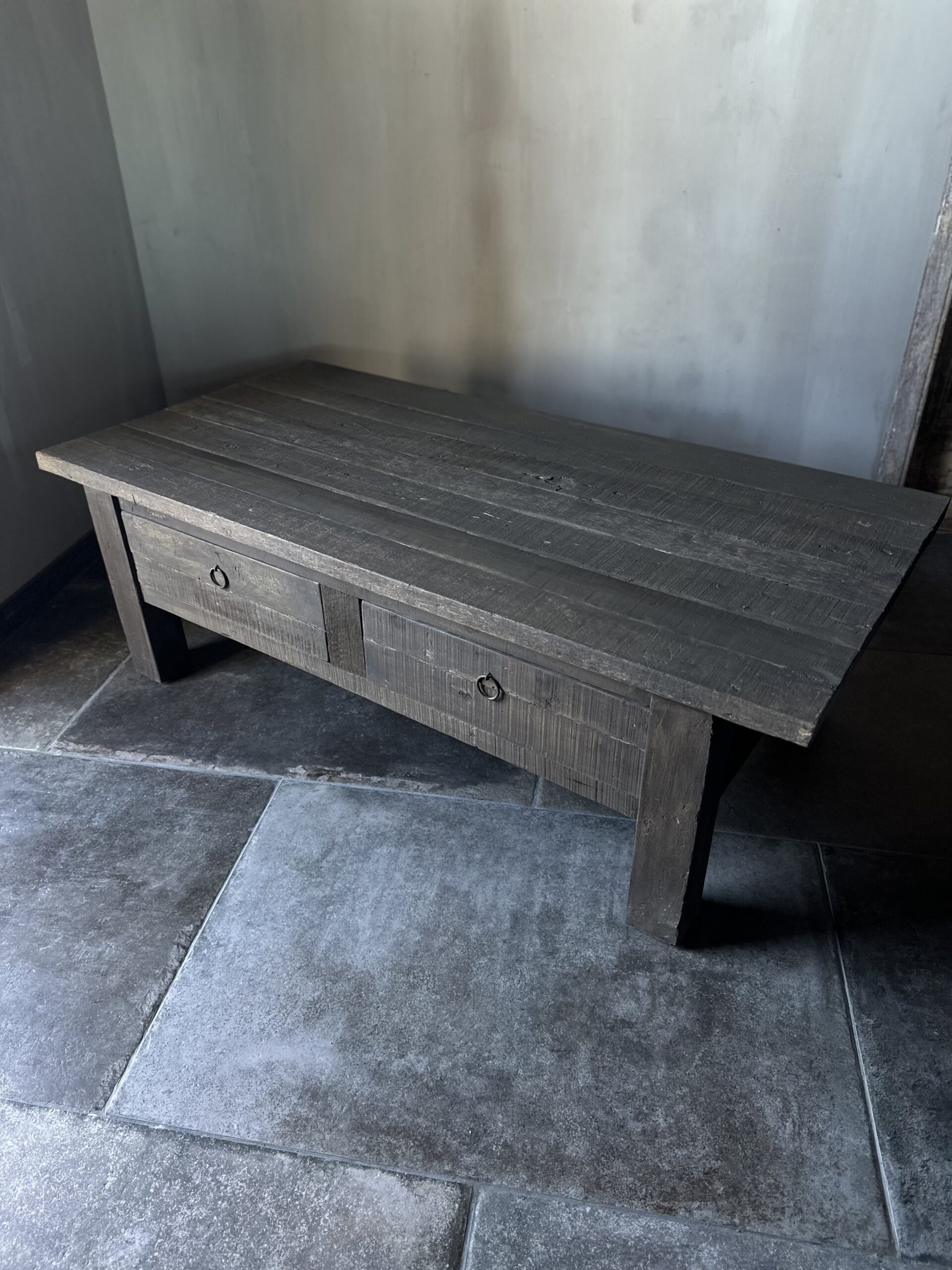 Deze salontafel is gemaakt van Driftwood en heeft 2 grote lades.