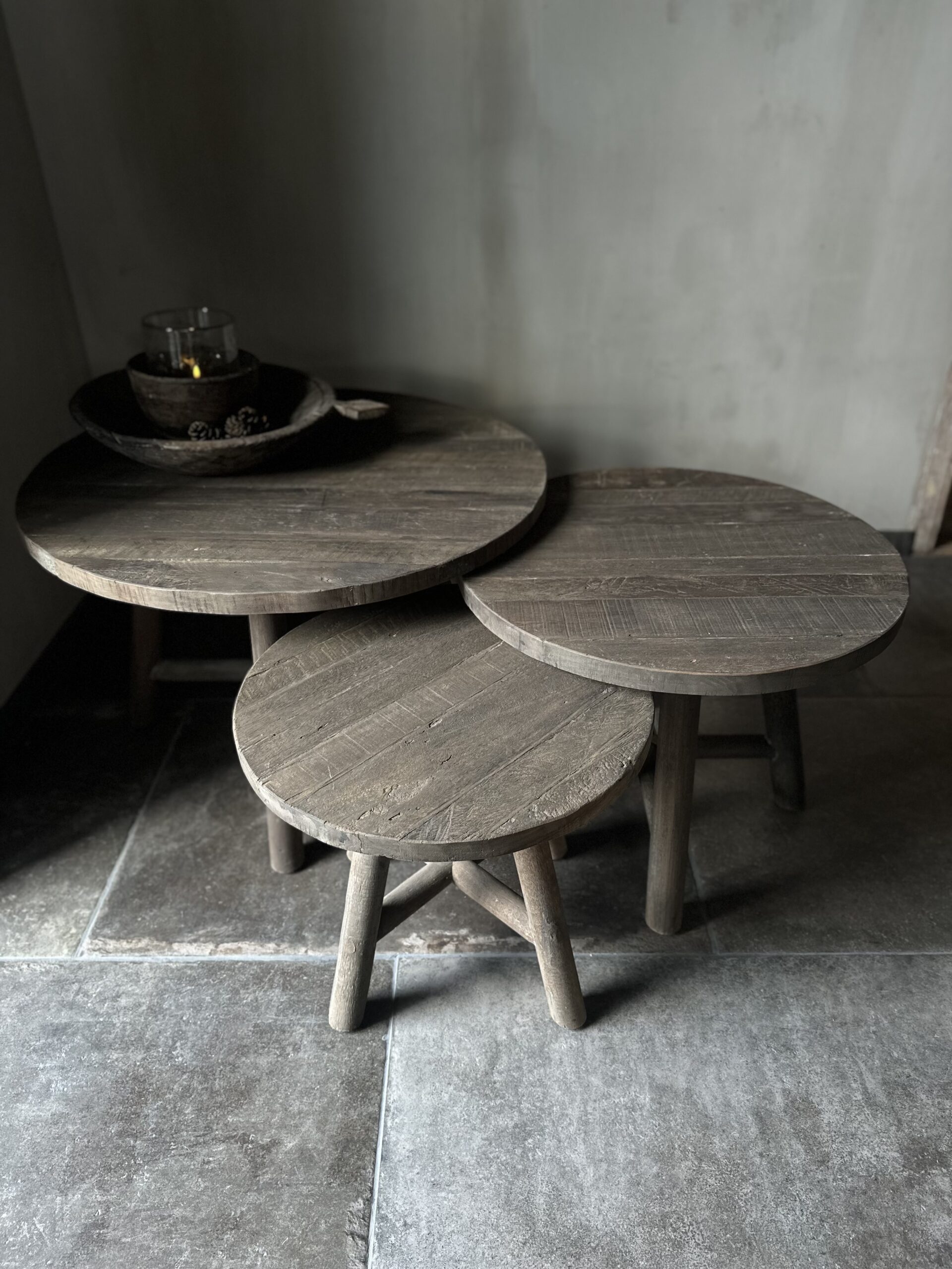 Deze prachtige set bestaat uit 3 ronde Driftwood salontafels.