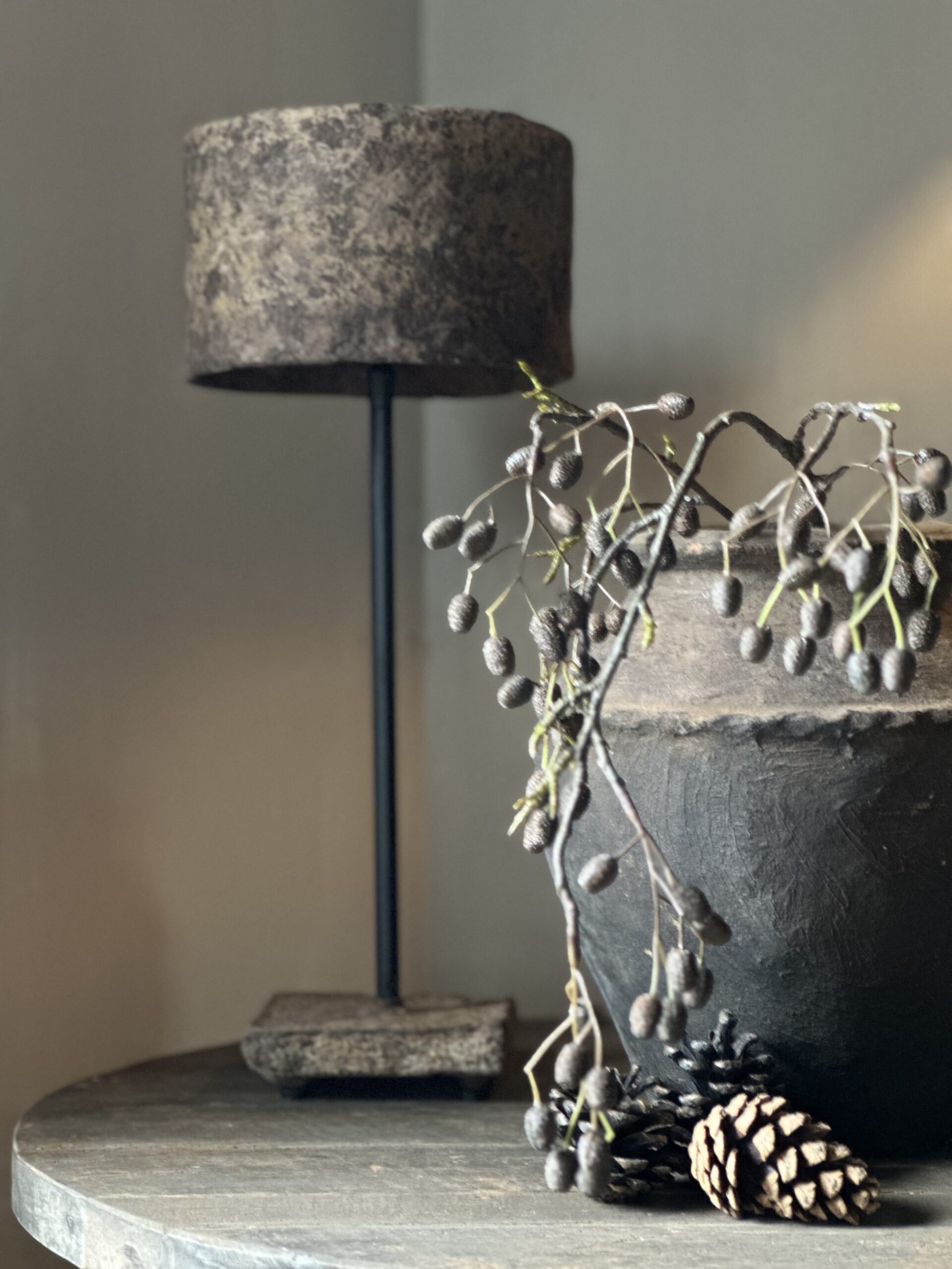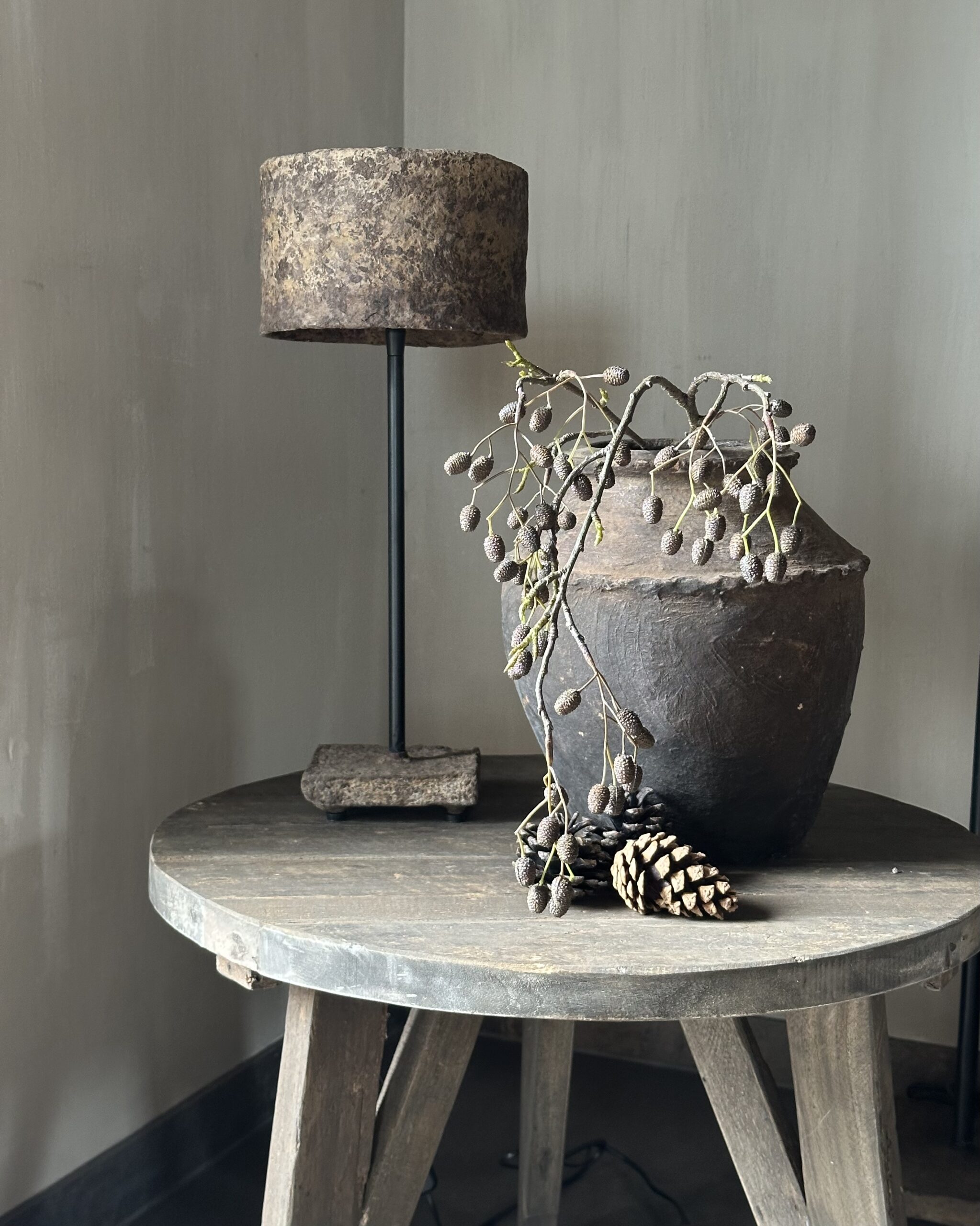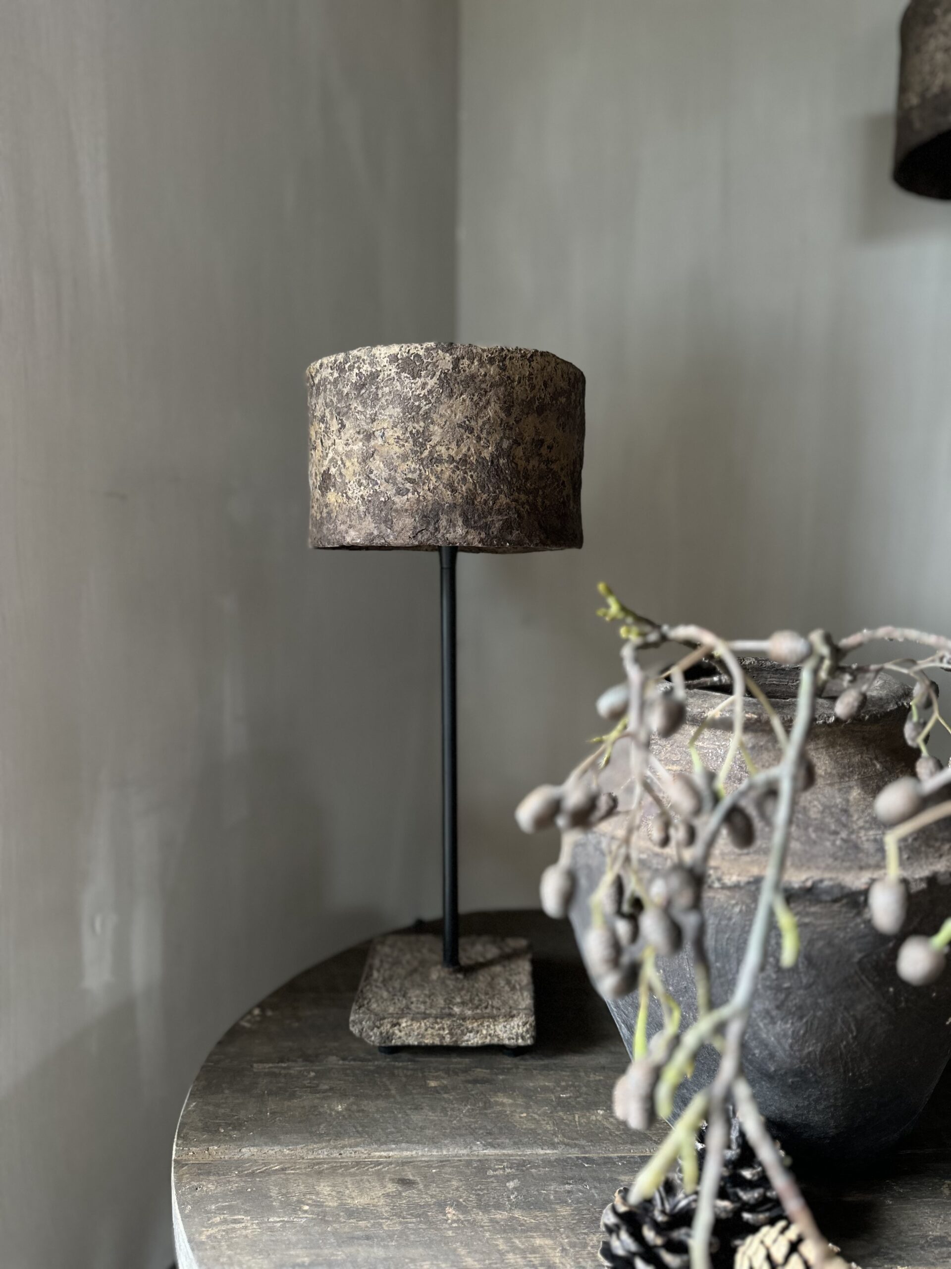De kap en de voet zijn gemaakt van leem, en deze heeft een prachtige bruine gemêleerde kleur wat iedere lamp uniek maakt!