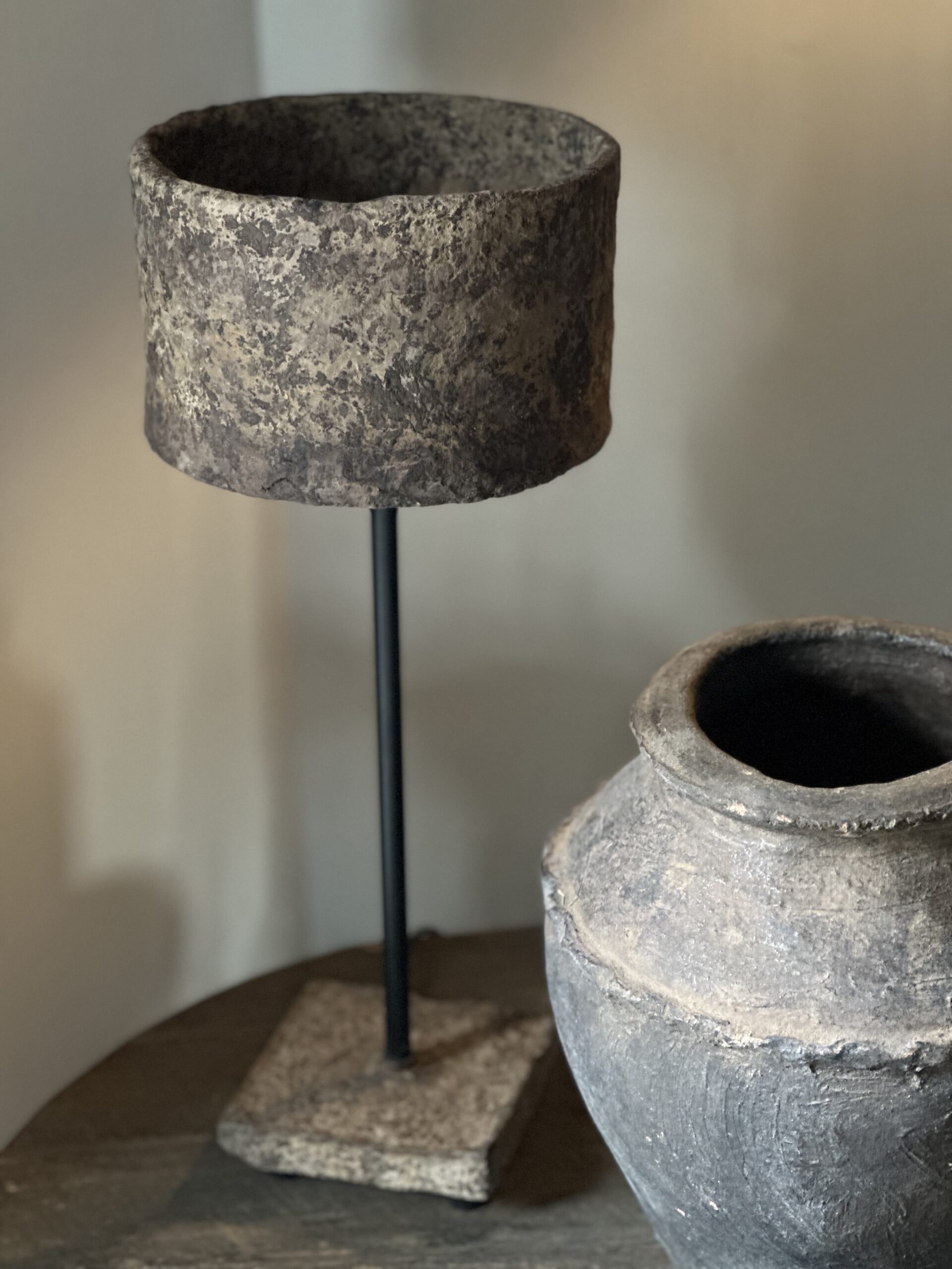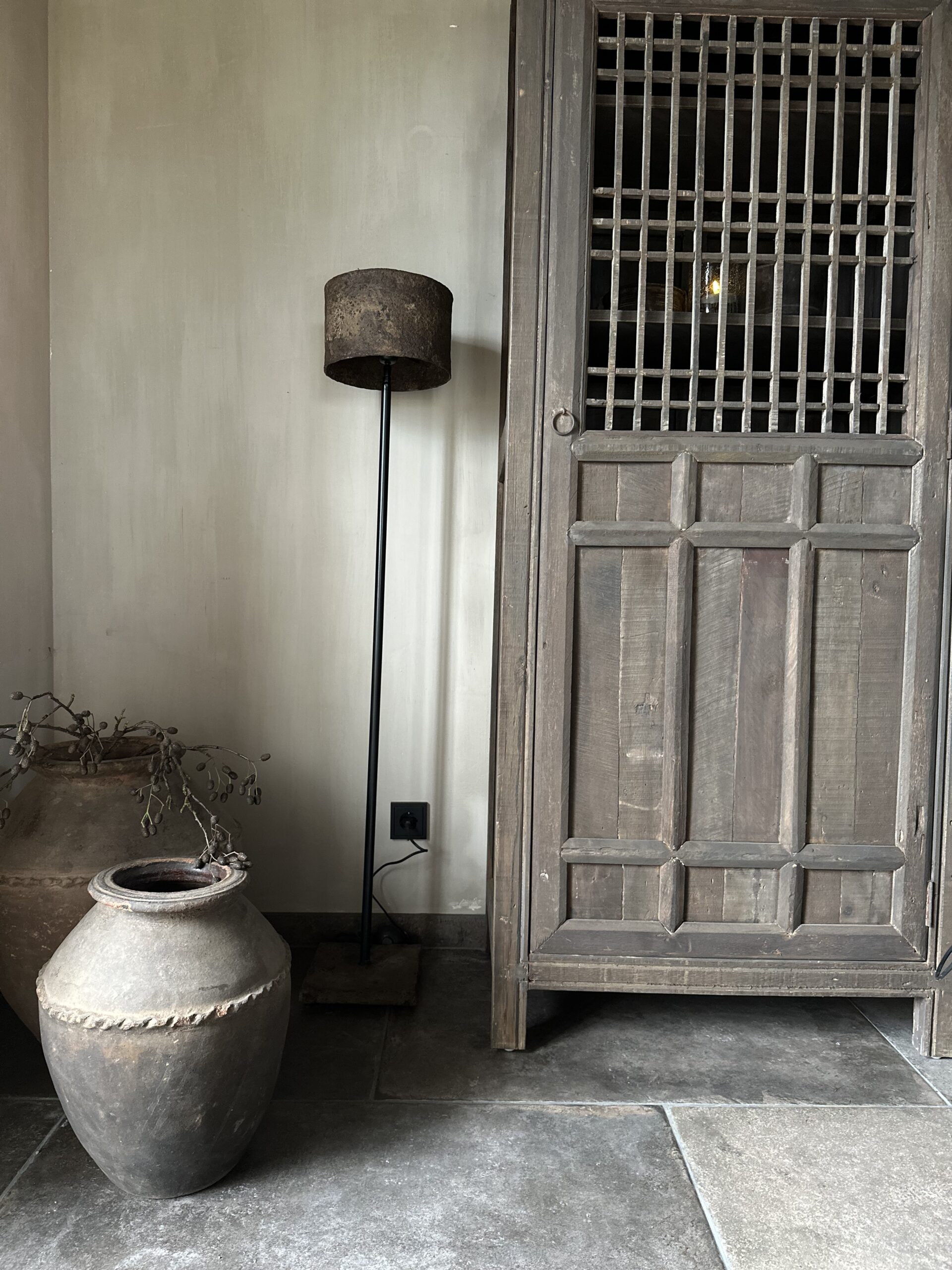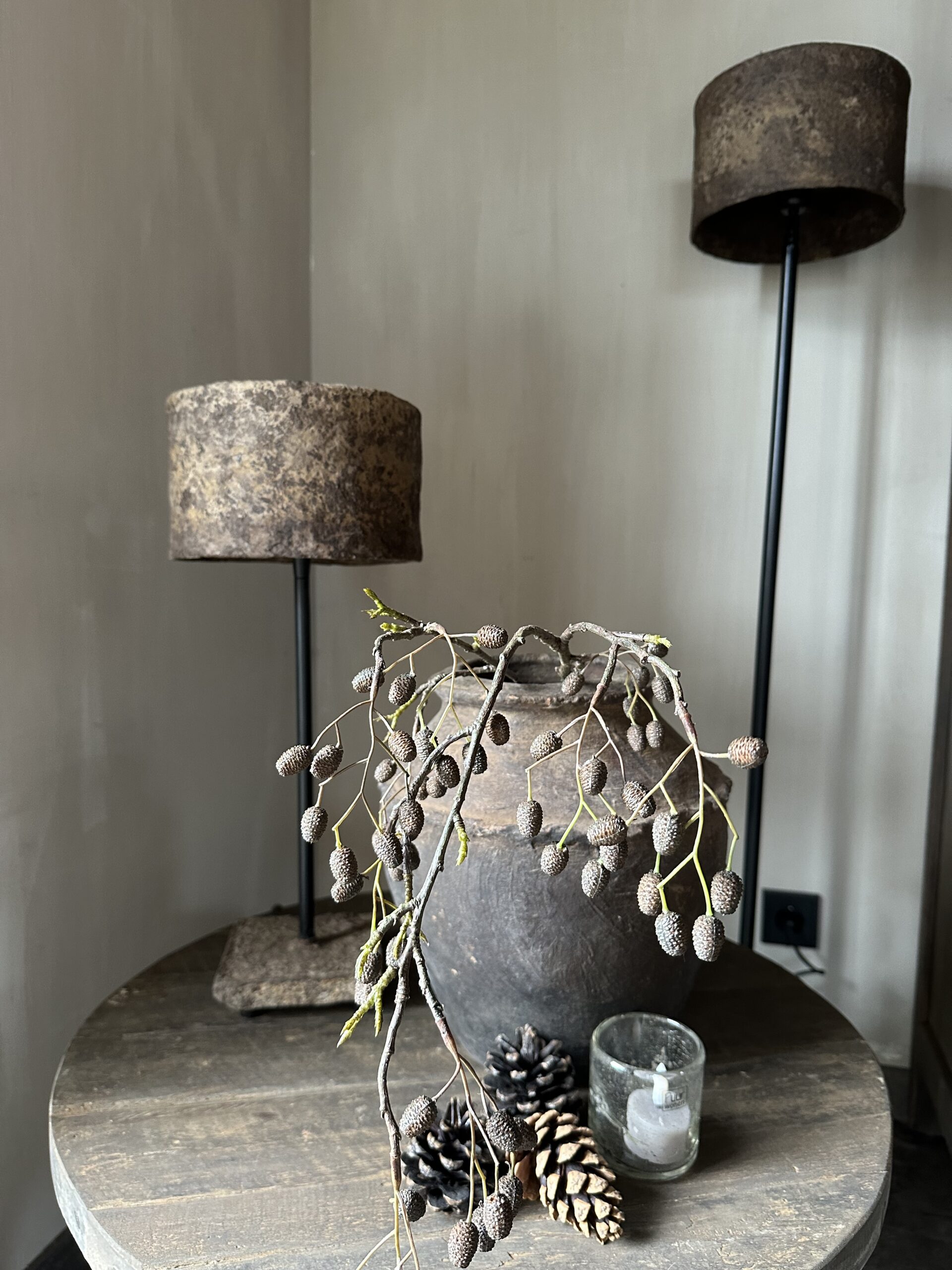 De kap en de voet zijn gemaakt van leem, en deze heeft een prachtige bruine gemêleerde kleur wat iedere lamp uniek maakt!