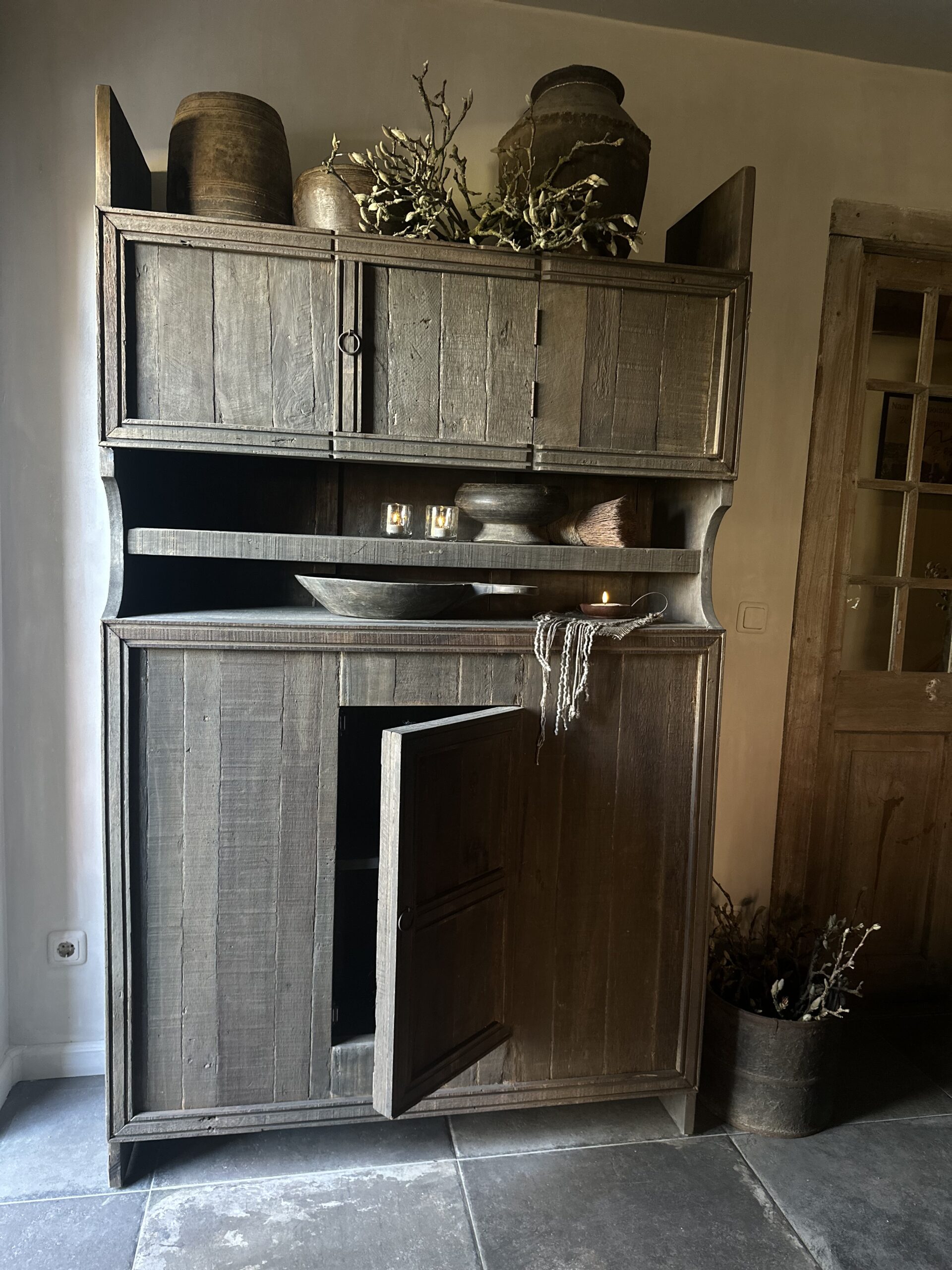 Deze kast zal op veel plekken tot zijn recht komen…of dat nu in een woonkamer is of in de keuken. Het is gegarandeerd een eyecatcher!