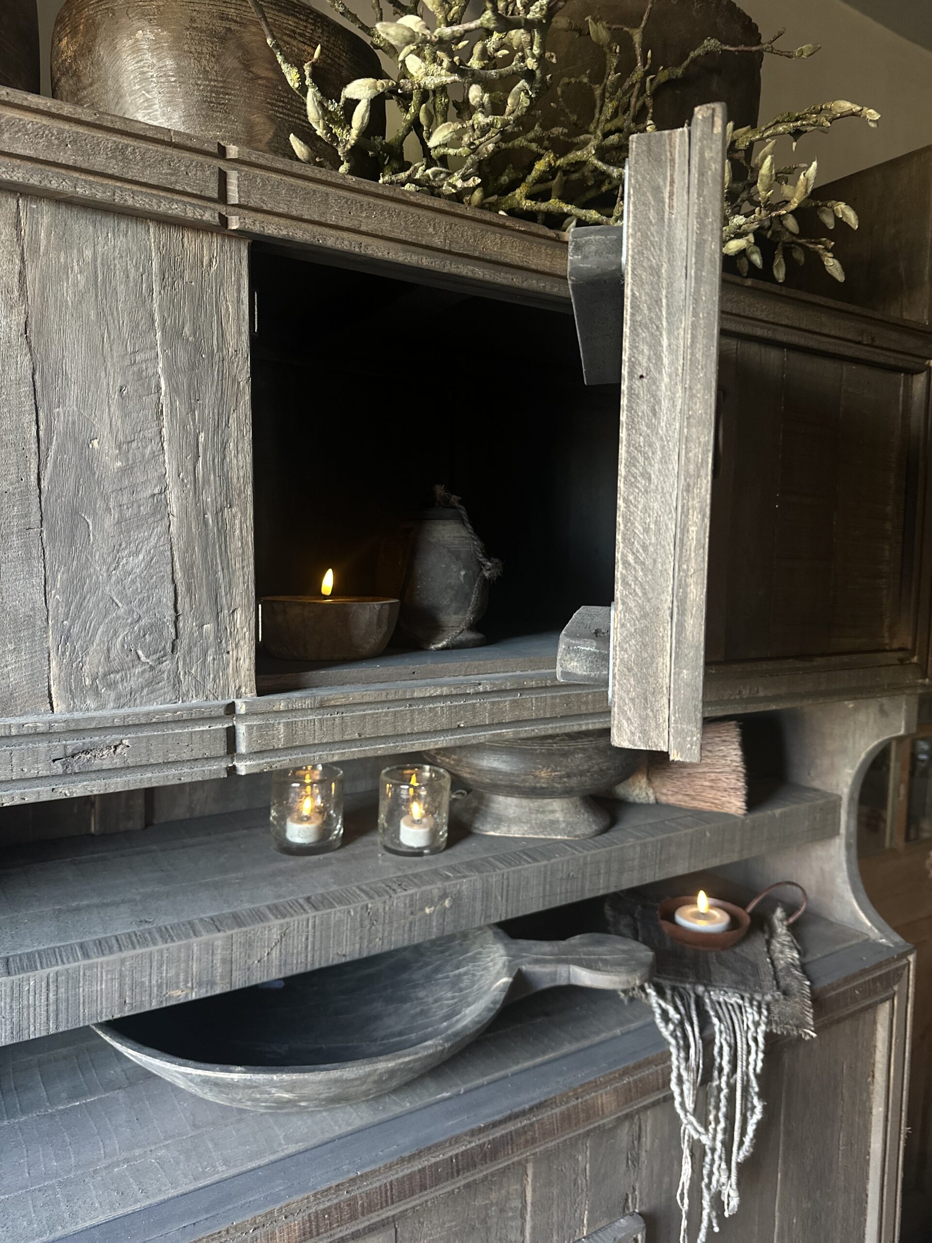 De Driftwood Collectie is opgebouwd uit oude planken van verschillend hardhout. De gerecyclede oude houten planken geven deze kast een unieke uitstraling.