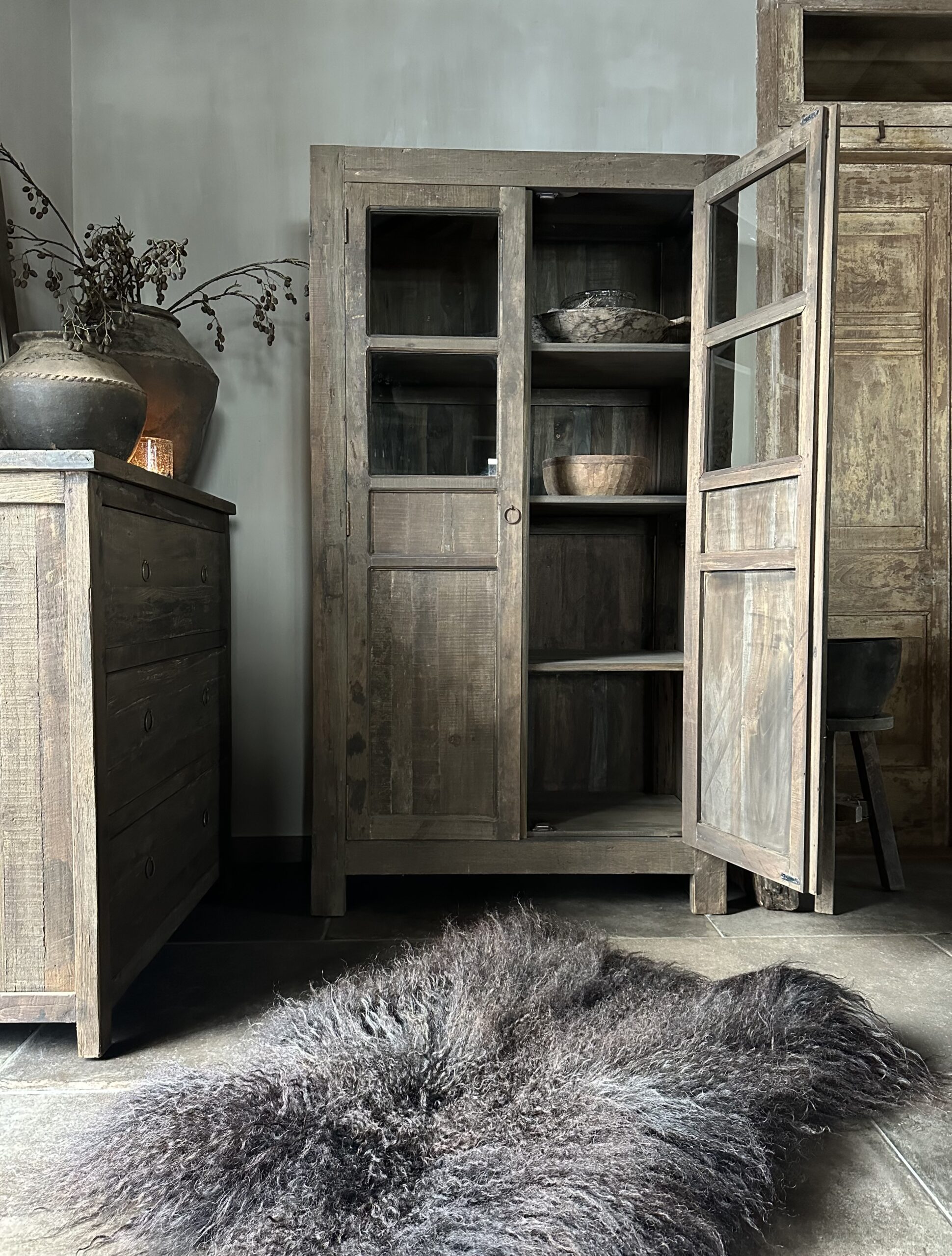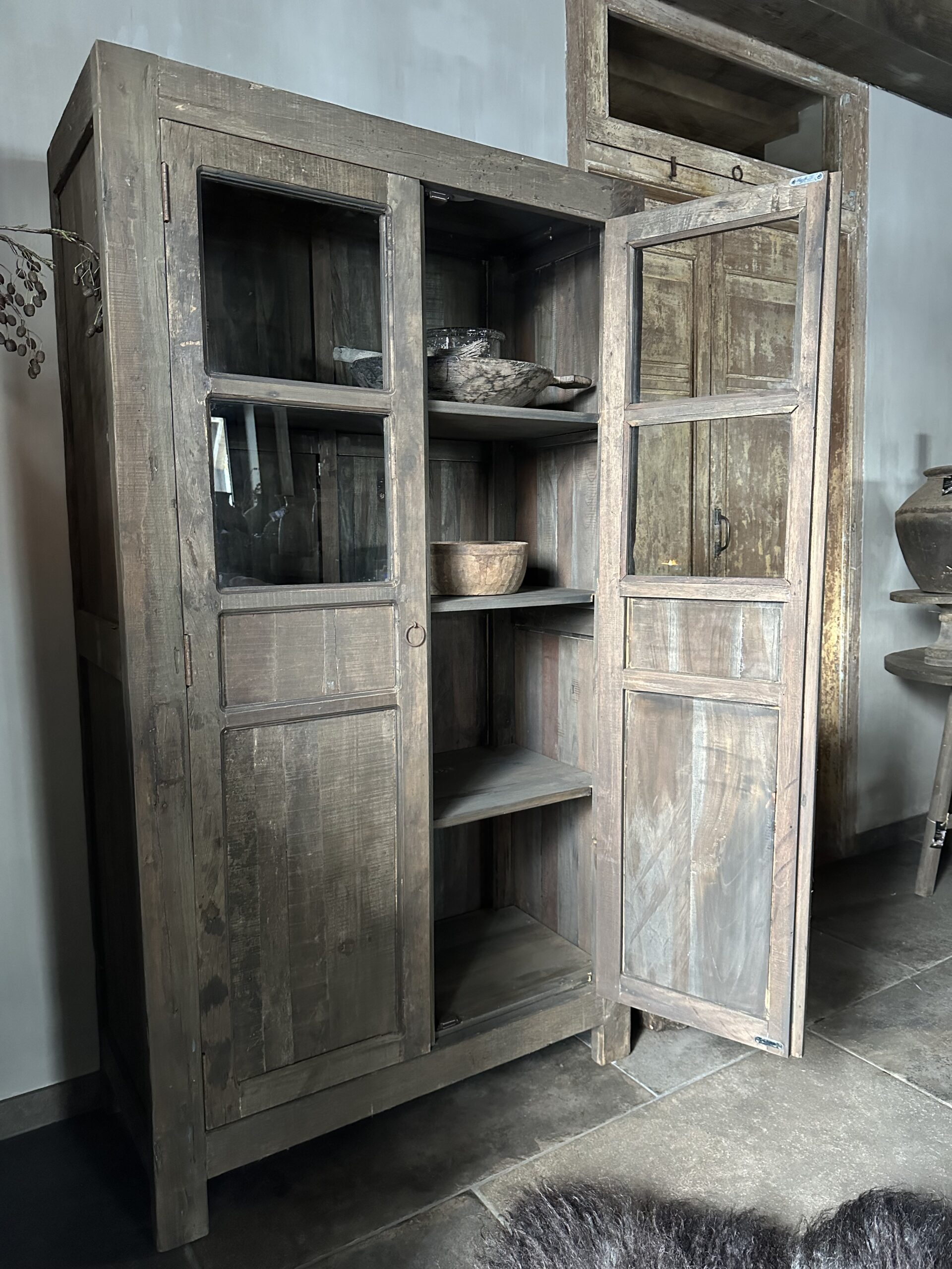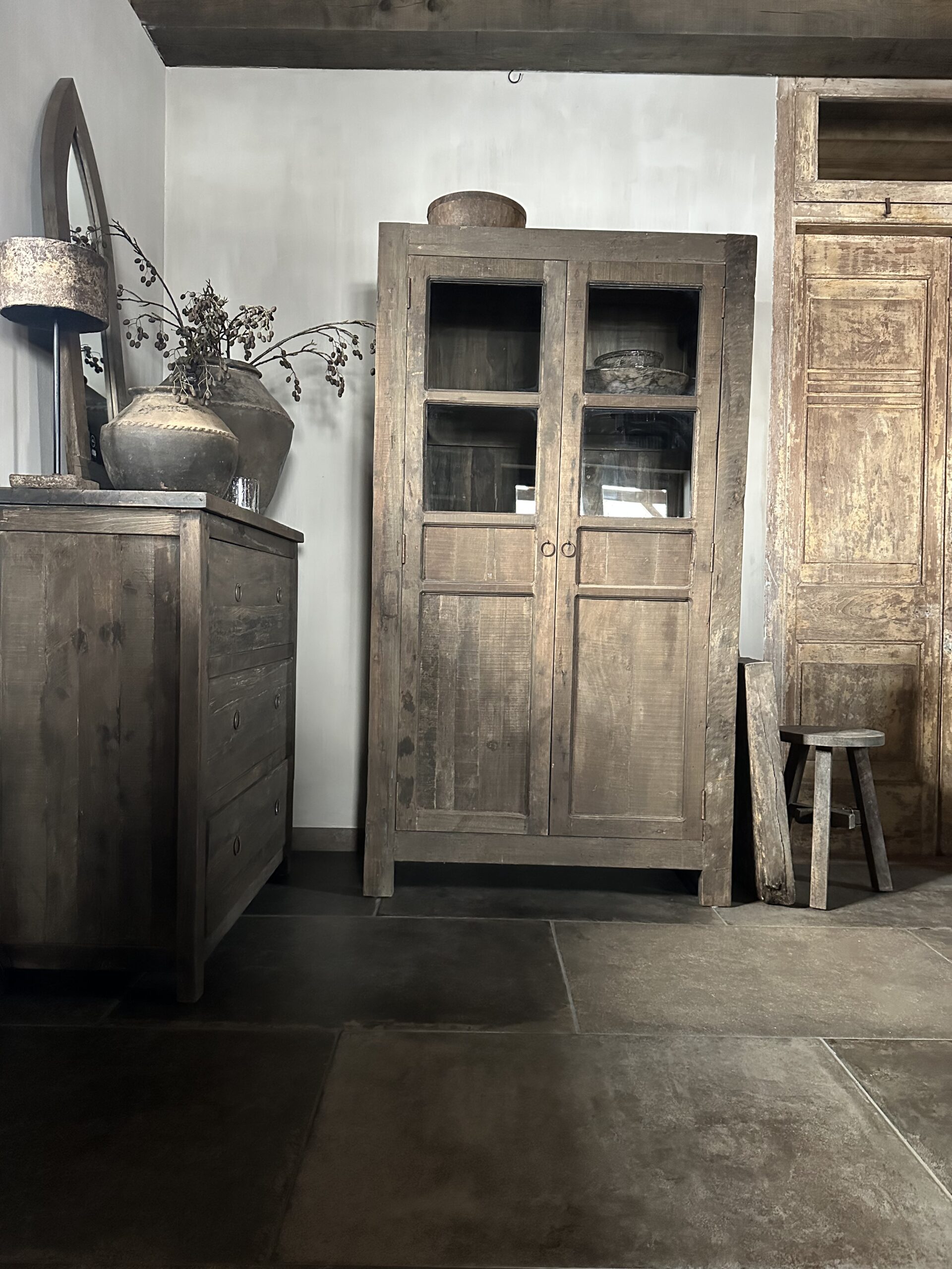 De Driftwood Collectie is opgebouwd uit oude planken van verschillend hardhout. De gerecyclede oude houten planken geven deze kast een unieke uitstraling.