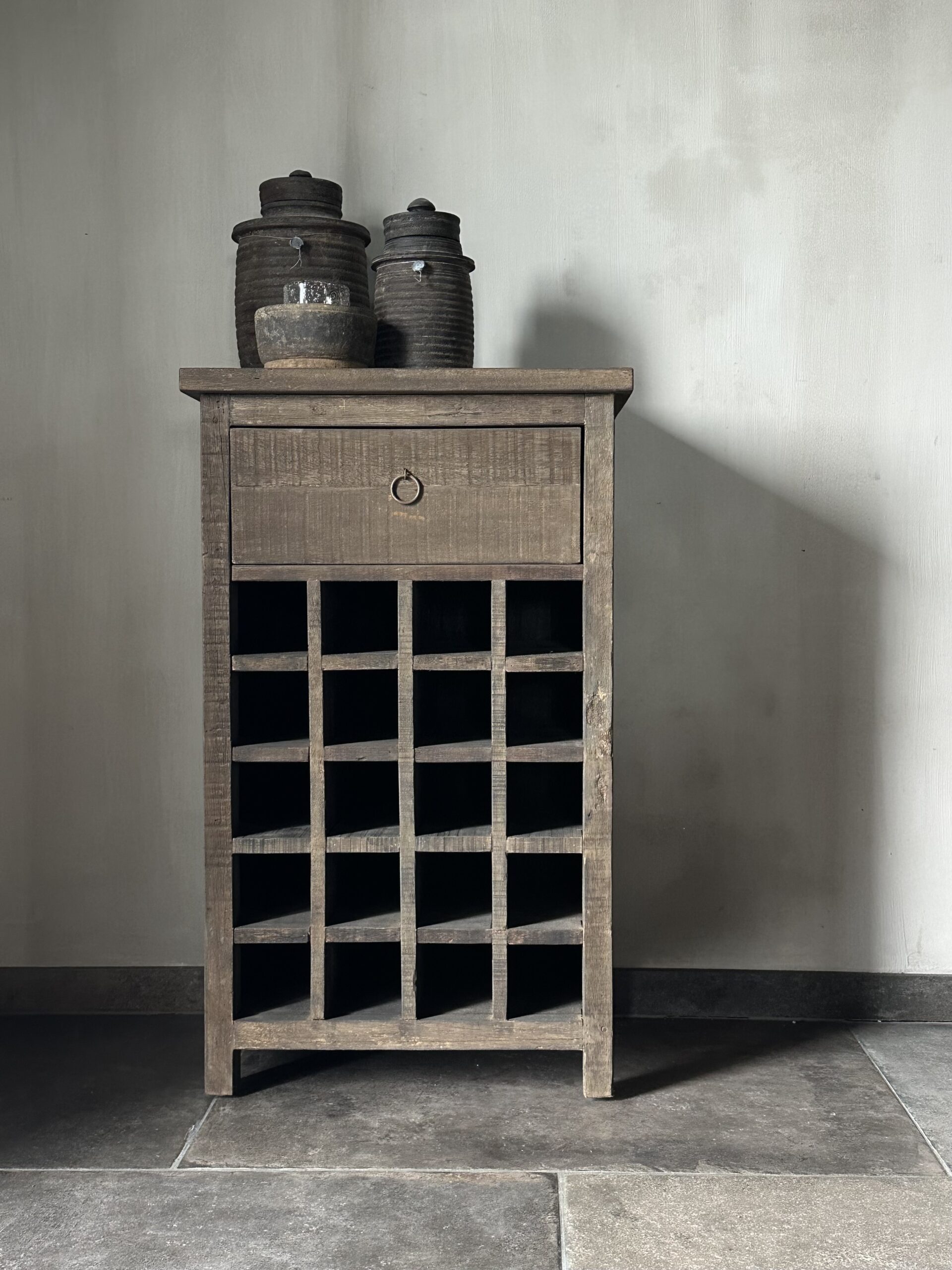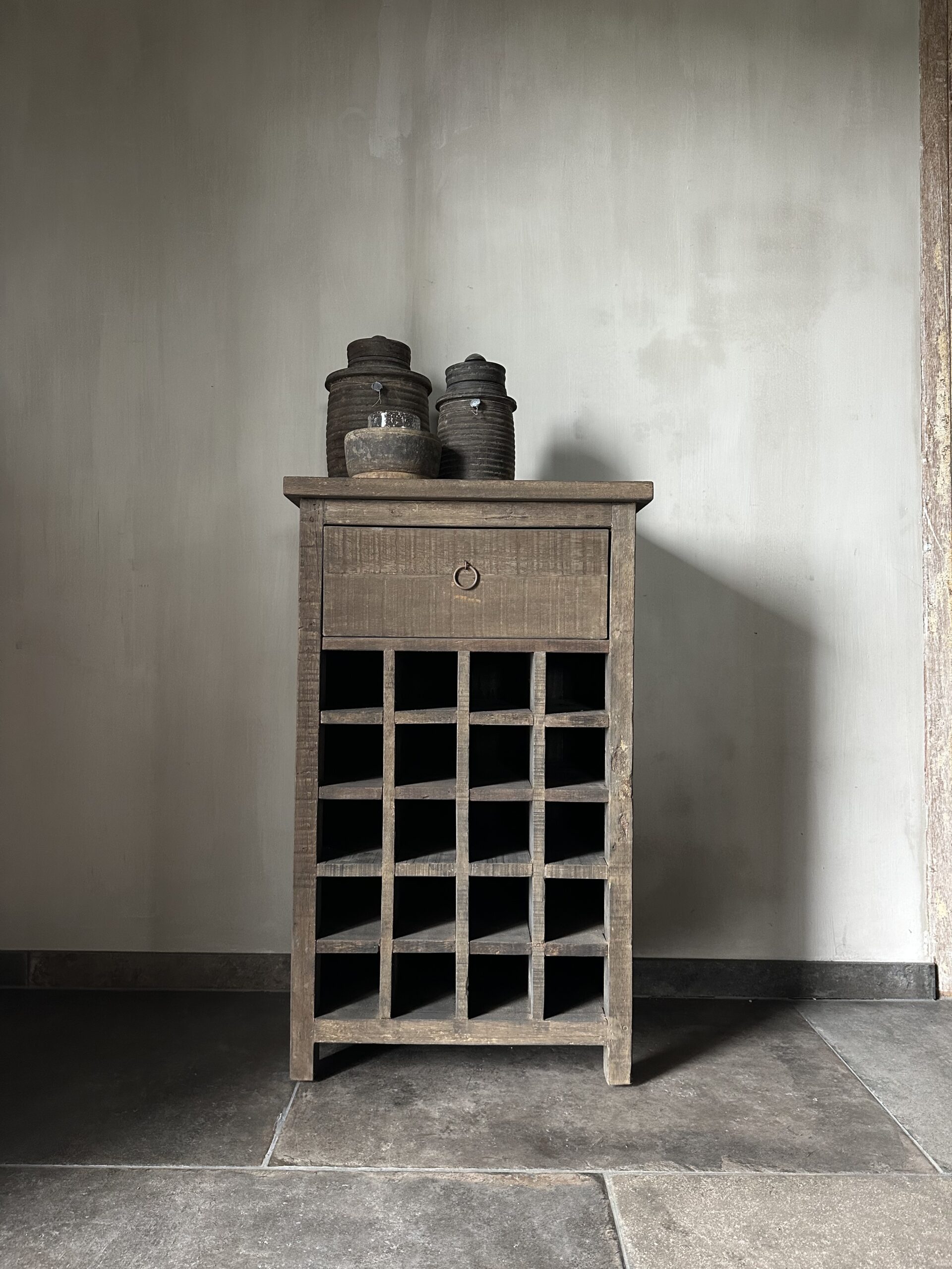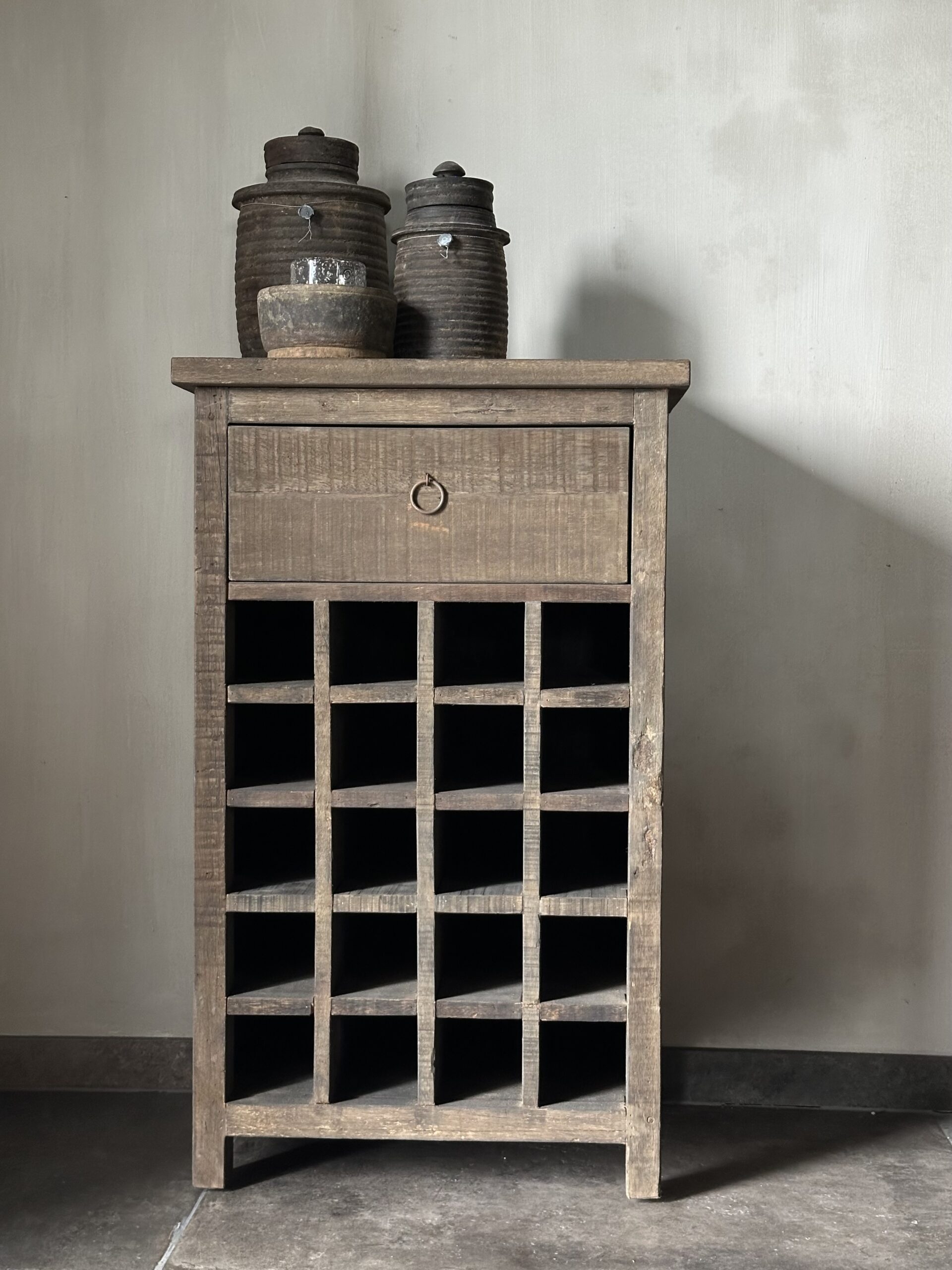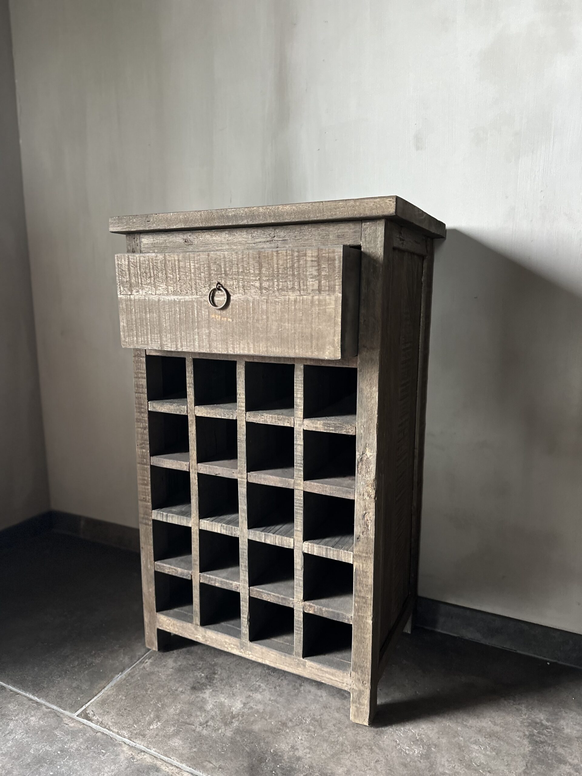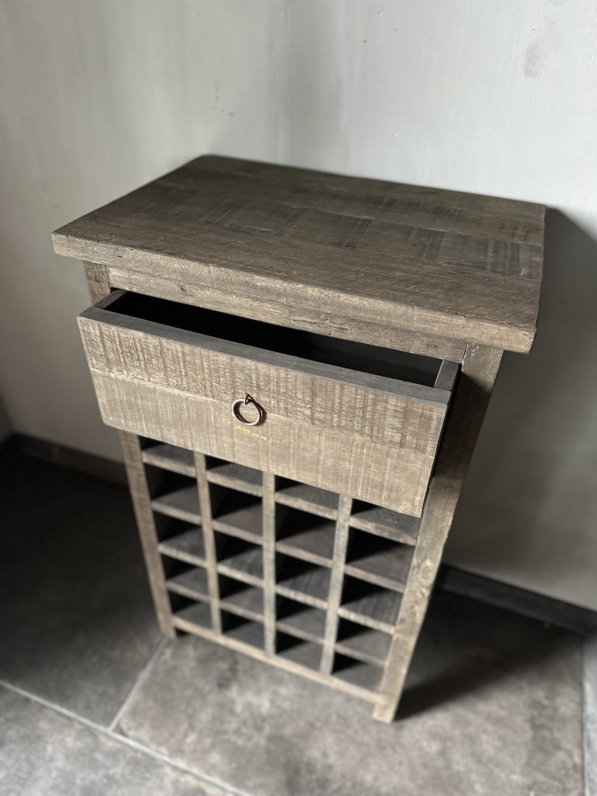 Voor de wijnliefhebber is dit prachtige Driftwood wijnrek / wijnkastje een aanwinst in het interieur!